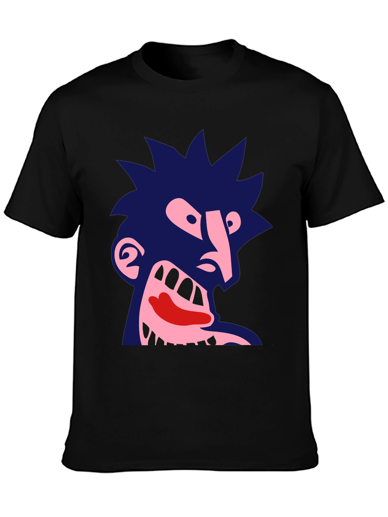 Make a statement with this unique black tee. Featuring a bold, abstract graphic design, this shirt is perfect for expressing your individuality. The eye-catching, cartoon-like face adds a touch of dark humor to your wardrobe, making it a great conversation starter. Comfortable and stylish, this tee is suitable for casual outings, concerts, or just lounging around. Show off your unique style with this one-of-a-kind graphic tee that blends art and comfort seamlessly. A great piece to show off your personality!