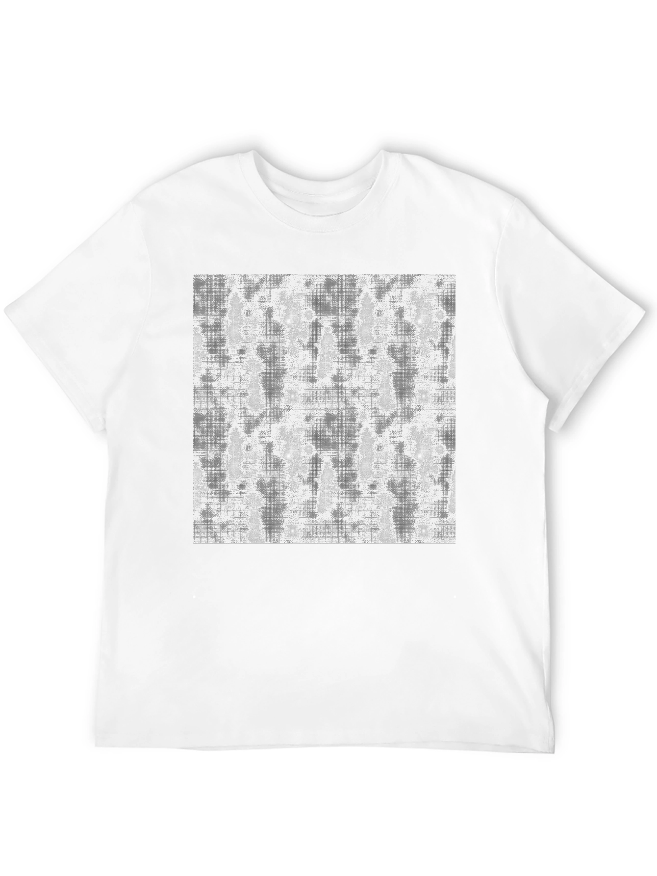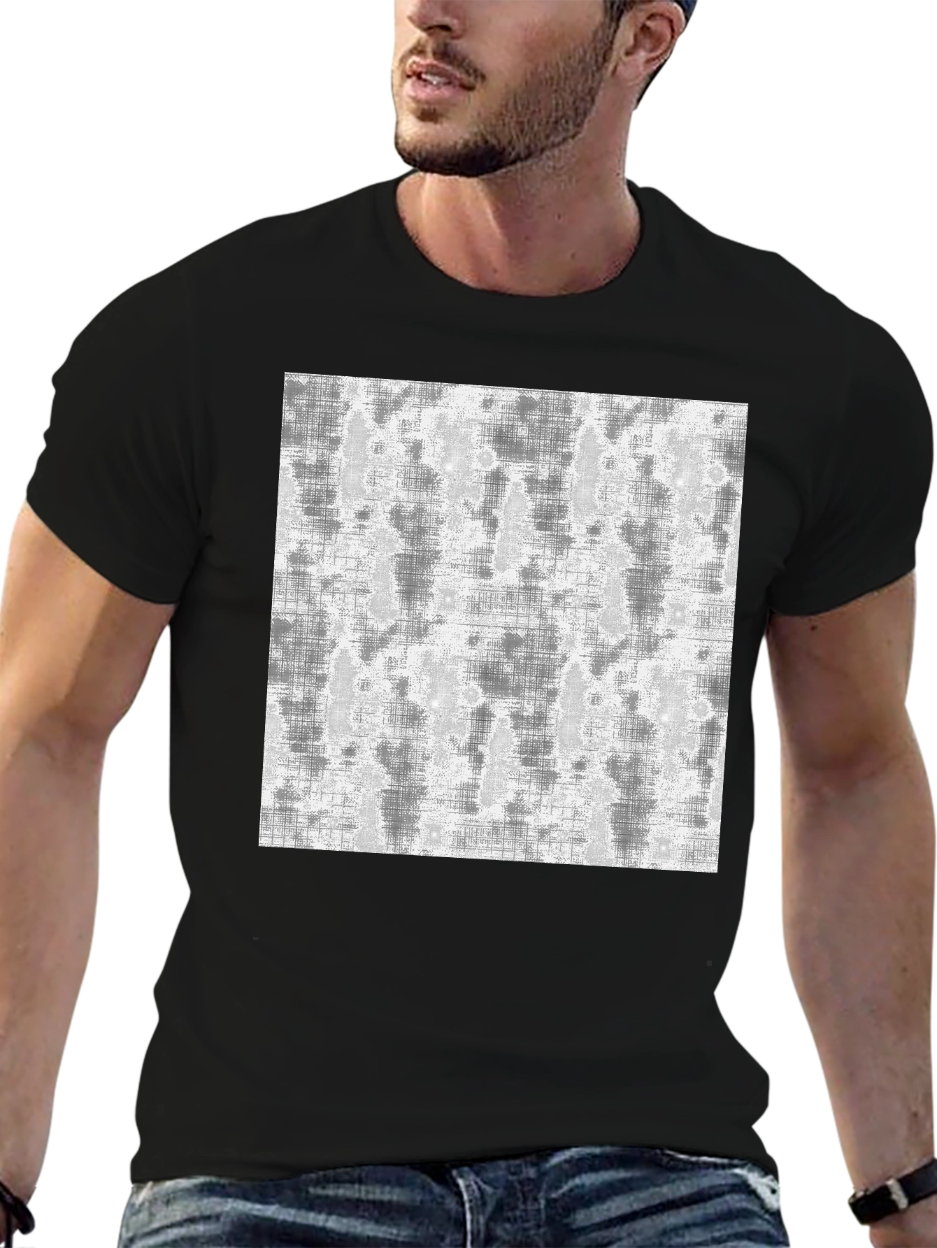 Elevate your casual style with this unique black t-shirt featuring an eye-catching abstract print. The design boasts a distinctive mottled pattern in muted greys, creating a modern and artistic aesthetic. Made from a soft, comfortable fabric, this tee is perfect for everyday wear. Its classic fit and short sleeves make it a versatile addition to your wardrobe, easily paired with jeans, chinos, or shorts. Ideal for casual outings, weekend adventures, or simply relaxing at home, this t-shirt offers both style and comfort. Add a touch of contemporary flair to your look with this must-have piece.