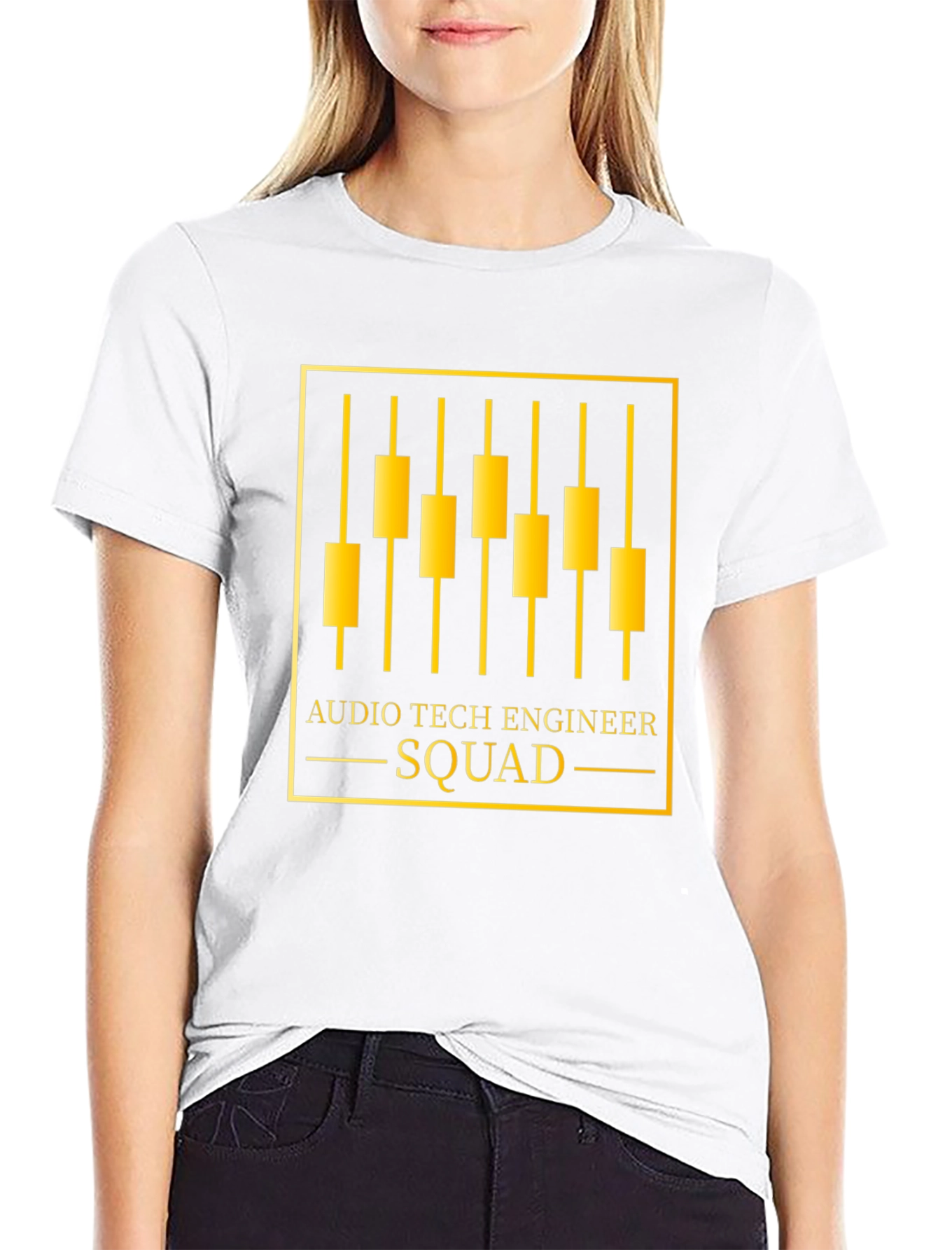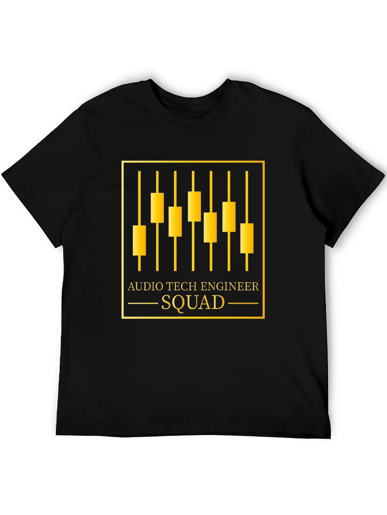 Show off your audio expertise with this cool graphic tee! The shirt features a striking design with equalizer sliders enclosed in a square border along with "Audio Tech Engineer" and "Squad" texts. Made from comfortable fabric, this tee is perfect for audio engineers, music producers, or anyone who loves sound. Wear it at the studio, concerts, or casual outings. A great gift for the audio enthusiast in your life!