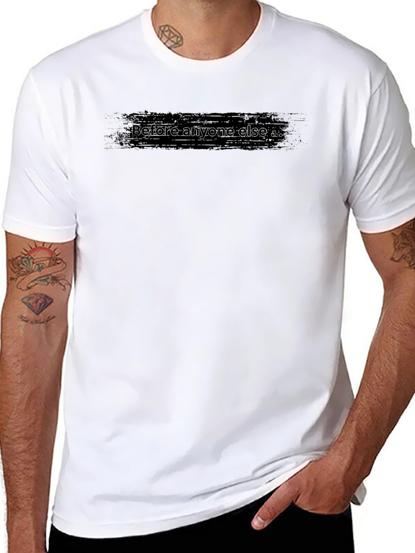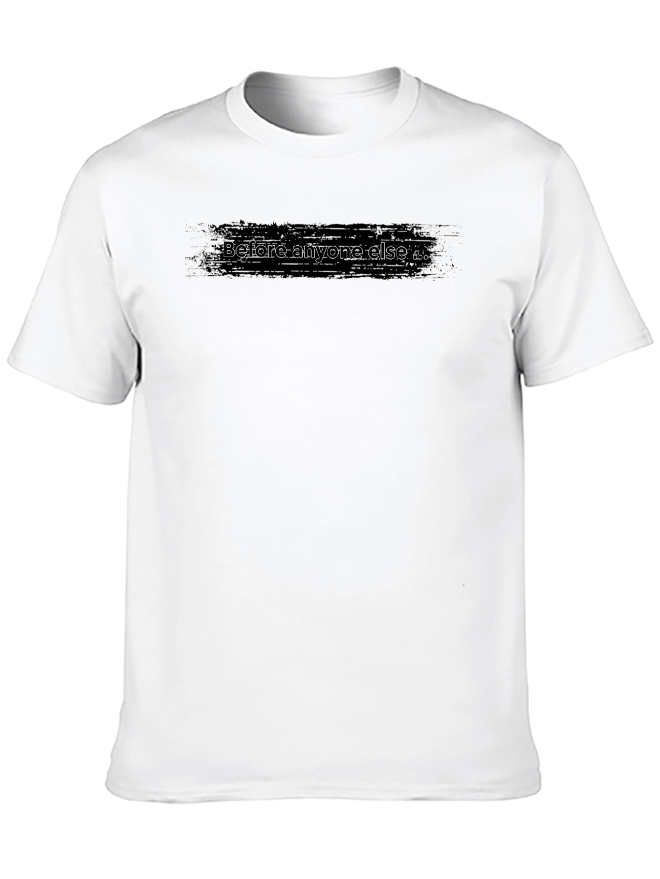 Show off your unique style with this sleek black t-shirt! Featuring a bold "Before anyone else ..." graphic across the chest, this tee makes a statement. The design, in a distressed style, is sure to turn heads. Made from a soft-looking breathable fabric, this shirt offers both comfort and style. Perfect for casual outings, layering, or making a statement wherever you go. Upgrade your wardrobe with this must-have piece and let your individuality shine. Pair it with your favorite jeans or shorts for a complete look.
