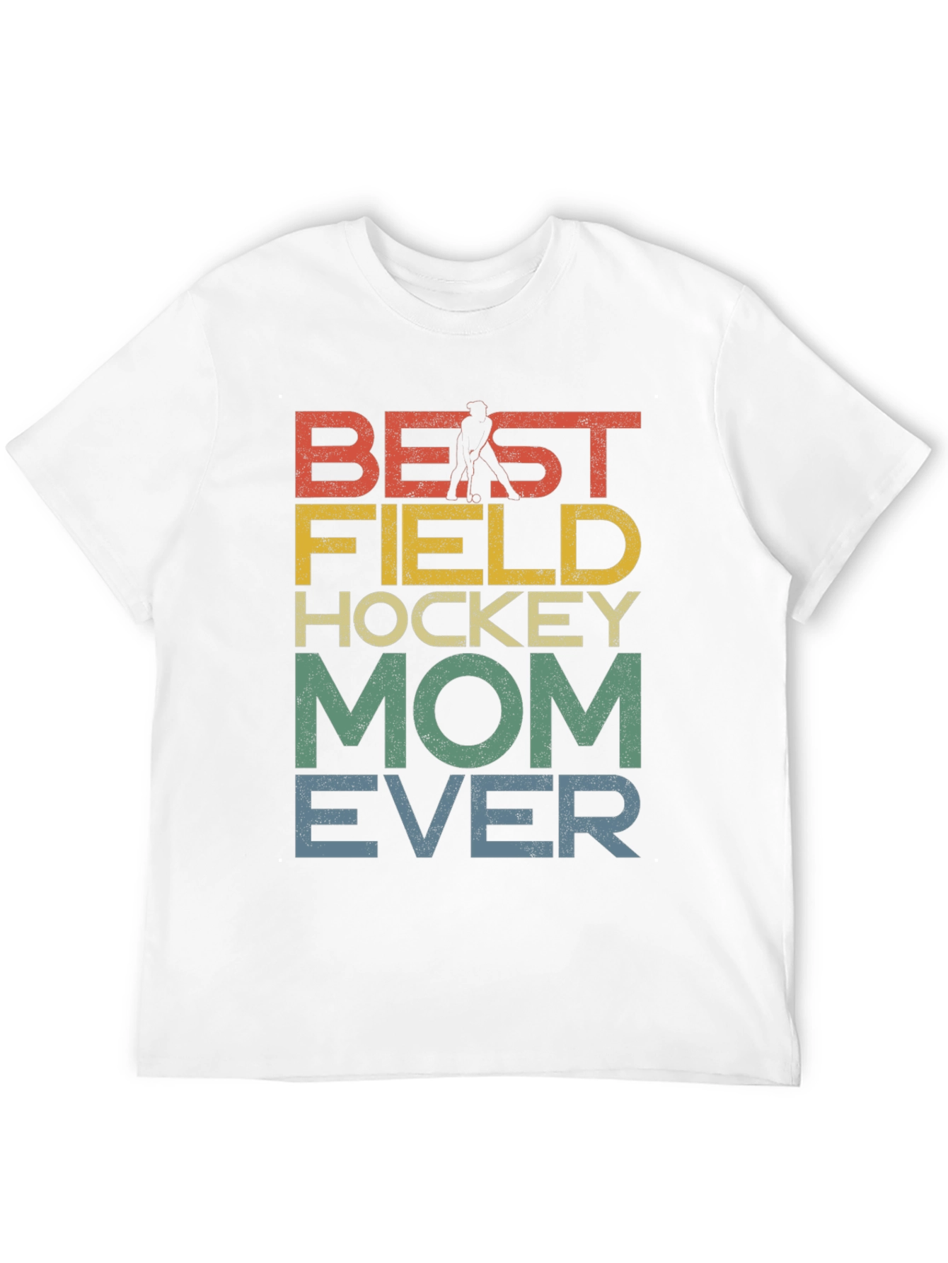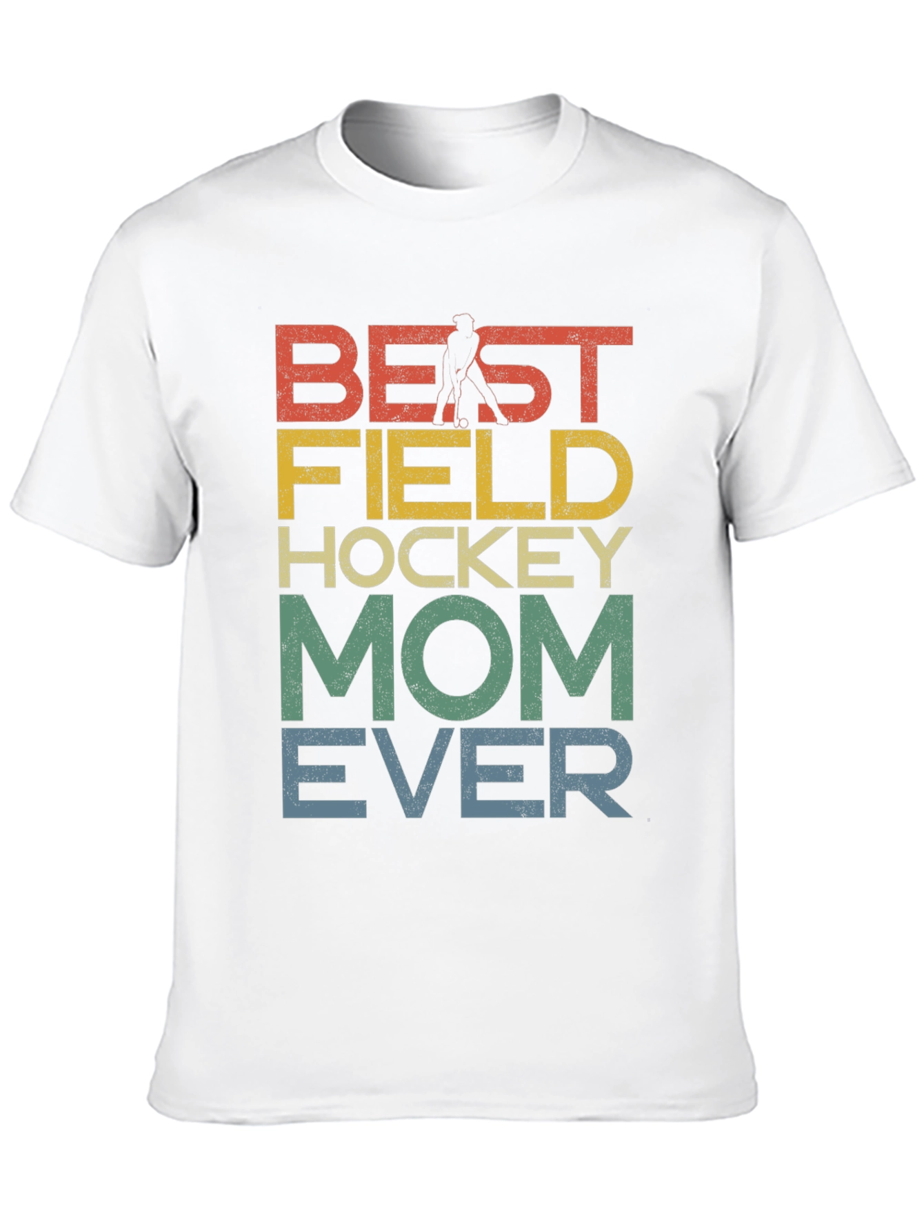 Show your field hockey mom pride with this stylish graphic tee! The shirt features the words "Best Field Hockey Mom Ever" in a vintage, stacked design with a silhouette of a hockey player above. The bold, distressed lettering is eye-catching, and the classic crew neck and comfortable fit make it perfect for game days or casual wear. This tee is a great way to support your favorite player and let everyone know who the best field hockey mom is! Made from a soft, breathable fabric for all-day comfort.