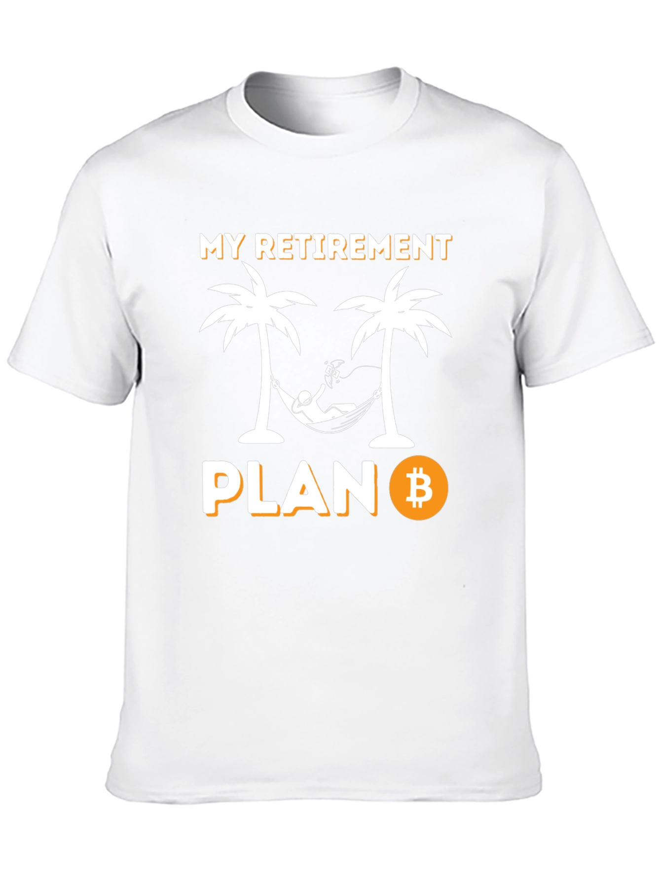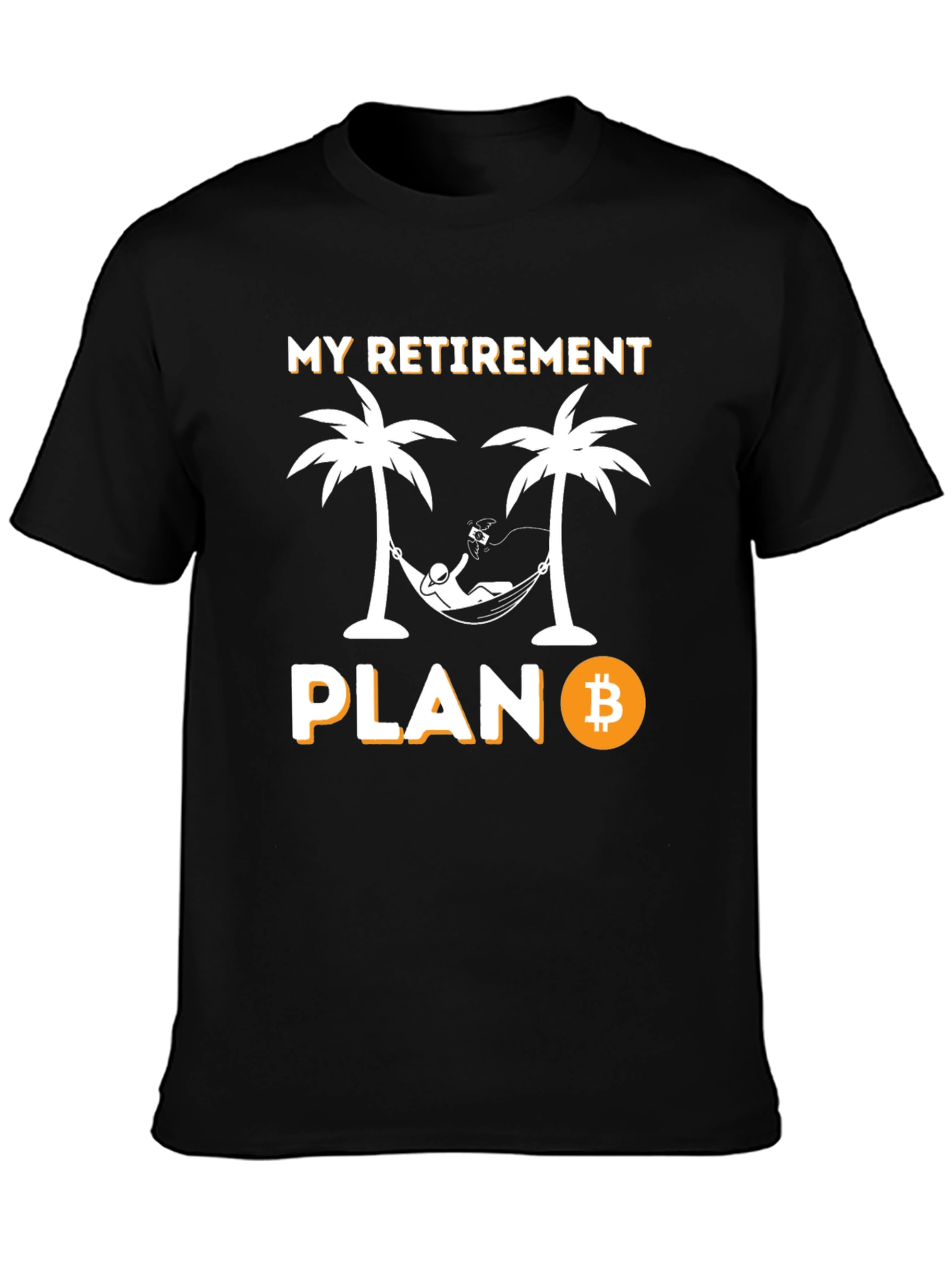 This classic black t-shirt features a humorous "My Retirement Plan" graphic, perfect for cryptocurrency enthusiasts. The design showcases palm trees, a hammock, and a relaxed figure enjoying retirement with a Bitcoin symbol. Made from what appears to be a soft and breathable fabric, this tee offers both style and comfort. Ideal for casual wear, crypto meetups, or as a funny gift for Bitcoin investors. Show off your future financial freedom with this unique and eye-catching design!