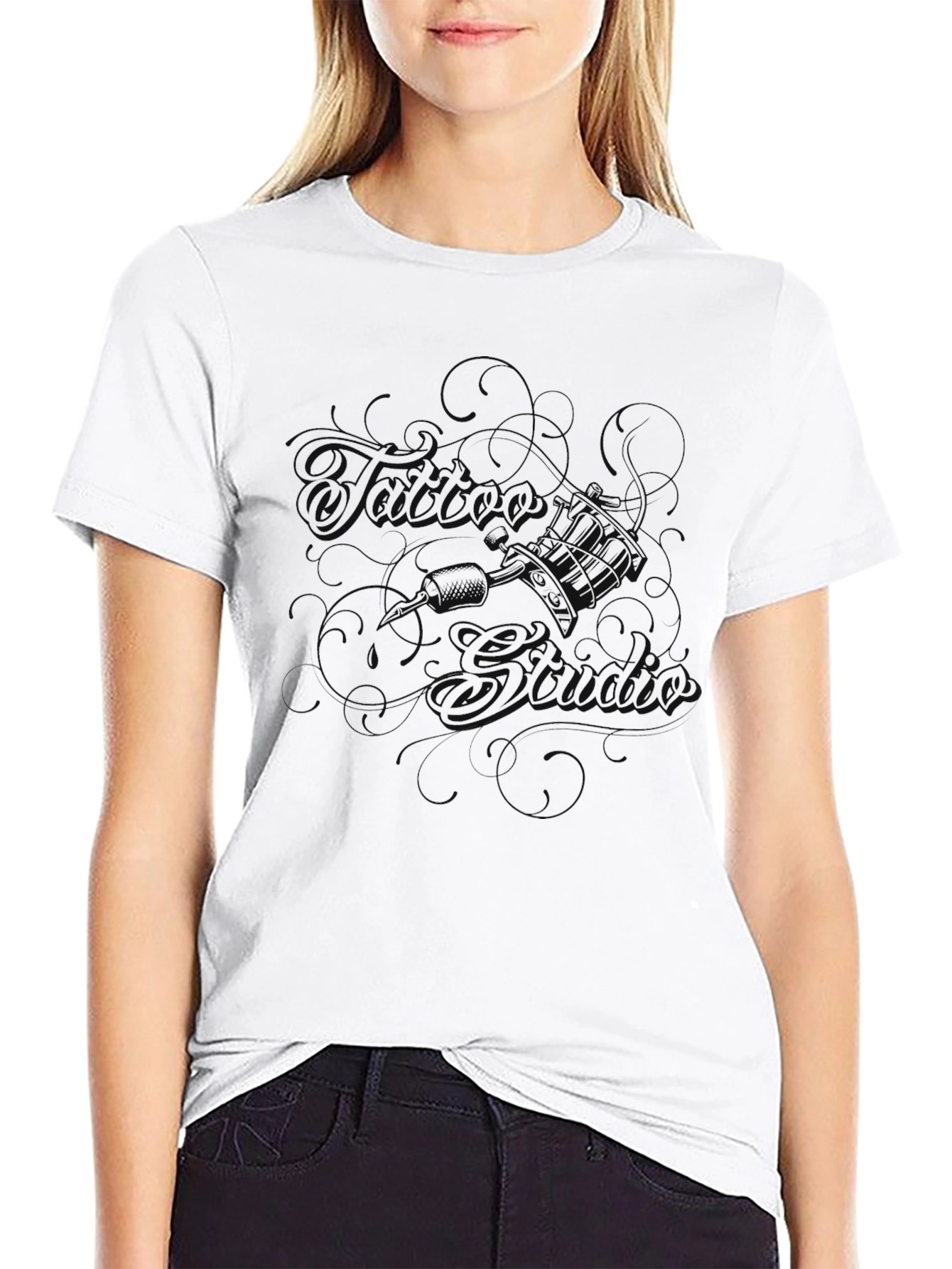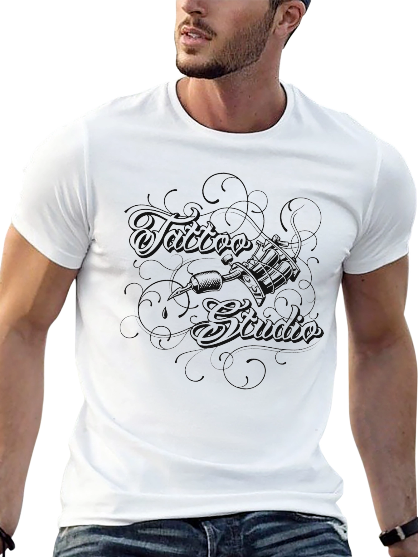 This black t-shirt features a classic crew neck design and short sleeves. The shirt is made from what appears to be a soft, comfortable cotton blend. A subtle, dark graphic is printed on the front, adding a touch of understated style. This tee is versatile enough for everyday wear, easily paired with jeans, shorts, or chinos for a casual look. The minimalist design makes it a great base for layering under jackets or sweaters. The dark graphic adds an edgy touch without being overly loud. A comfortable and stylish addition to any wardrobe.