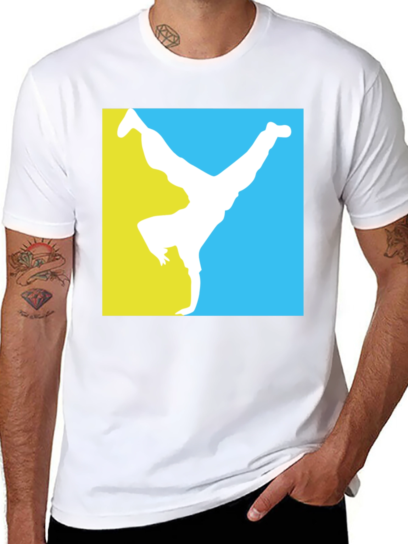 Show off your love for breakdancing with this unique graphic t-shirt. The design features a stylized silhouette of a breakdancer in action against a vibrant two-tone background. Made from a comfortable, breathable material, this t-shirt is perfect for casual wear, dance practice, or showing off your personality. The bold graphic ensures you'll stand out from the crowd. Wear it to dance battles, hip-hop events, or just around town. A must-have for any breakdance enthusiast or anyone looking for a cool, stylish tee. Get yours today and express your passion!