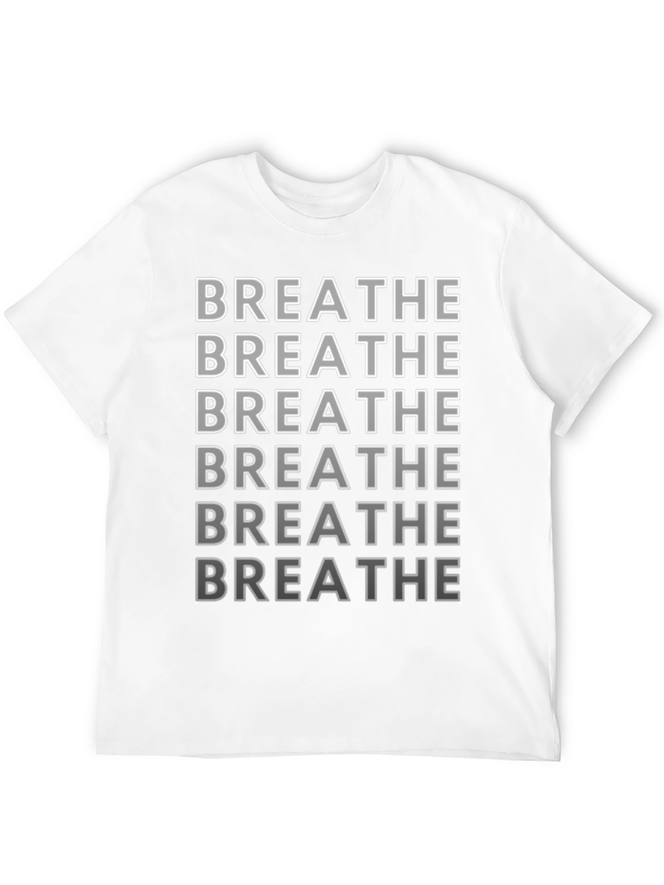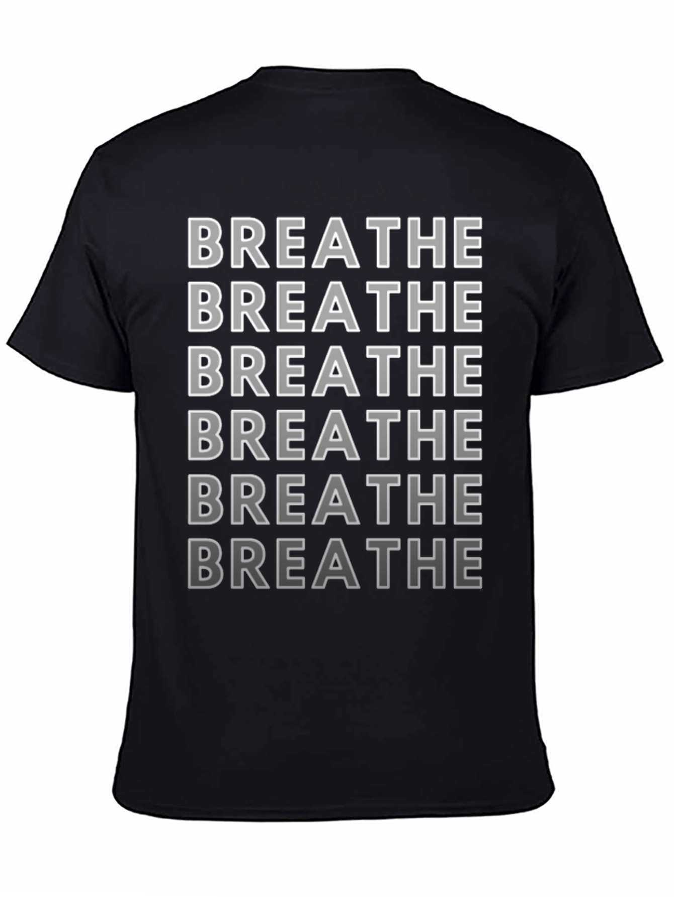 Find your inner peace with this unique 'Breathe' t-shirt. Crafted from a soft, comfortable fabric, this black tee features a stacked 'Breathe' design in a stylish gradient, creating a calming and eye-catching aesthetic. Perfect for everyday wear, yoga sessions, or mindful moments, this t-shirt serves as a gentle reminder to take a deep breath and relax. Stay comfortable and fashionable while prioritizing your well-being. A great gift for yourself or anyone seeking serenity in a hectic world. Get yours today and breathe easy!