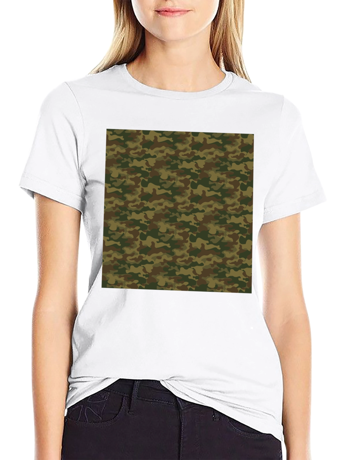 This eye-catching black t-shirt features a unique camouflage pattern on the front. The design incorporates various shades of green and brown, creating a classic yet stylish look. Made from what appears to be a soft and comfortable cotton blend, this shirt is perfect for everyday wear. The simple yet bold design makes it versatile for casual outings, weekend adventures, or just relaxing at home. The shirt's classic fit is suitable for a wide range of body types and styles. Whether you're a fan of camouflage or just looking for a cool and comfortable tee, this shirt is a great choice. Add a touch of rugged style to your wardrobe today!
