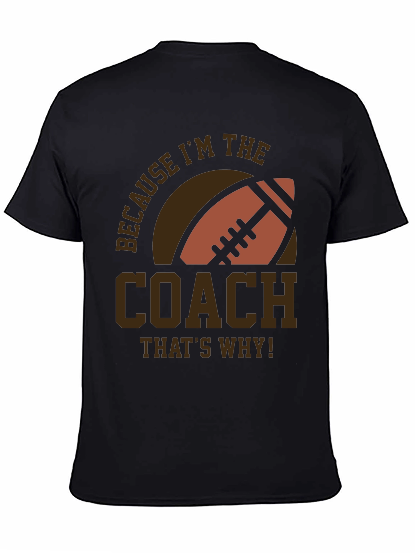 Show your team spirit with this awesome "Because I'm The Coach" football t-shirt! This black tee features a stylish design with a football graphic and bold lettering. Made from comfortable materials, it's perfect for coaches and football enthusiasts alike. Wear it to practice, games, or just around town to display your passion for the sport. This shirt makes a great gift idea for your favorite coach. Get yours today and let everyone know who's in charge!