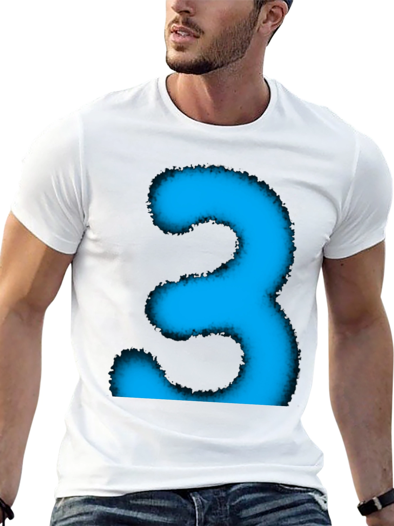 Rock this stylish black t-shirt featuring a bright blue, airbrushed-style number three design. The simple yet striking graphic adds a pop of color to any casual outfit. Made from a comfortable-looking cotton blend, this tee is perfect for everyday wear. Show off your unique style whether you're hanging out with friends, running errands, or relaxing at home. The eye-catching design is sure to turn heads and spark conversation. This tee offers a relaxed fit and easy care, making it a versatile and essential piece for any wardrobe. Get yours today and make a statement!