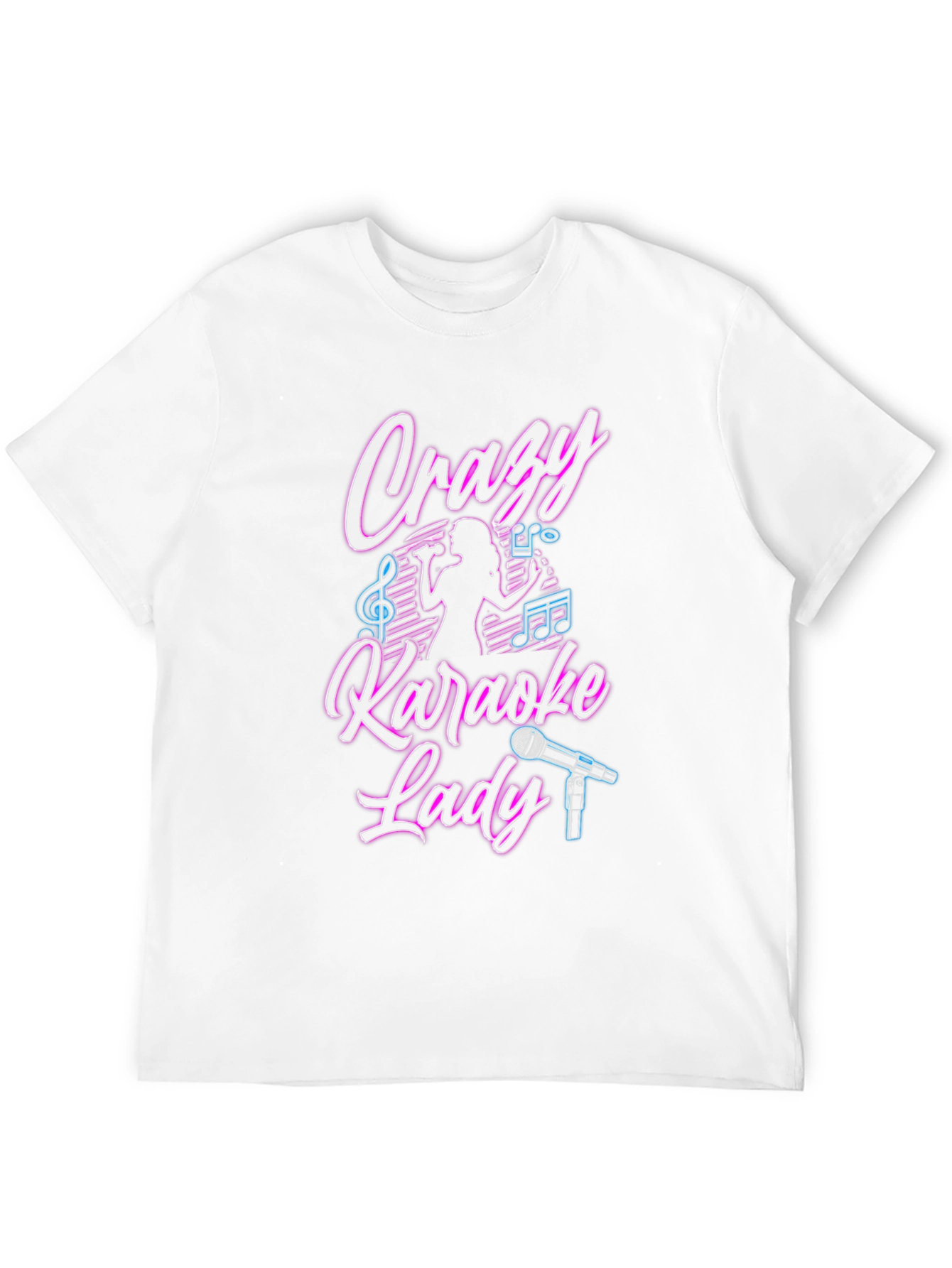 Crazy Karaoke Lady Neon Graphic T-Shirt - Karaoke Lover Casual Comfort Tee