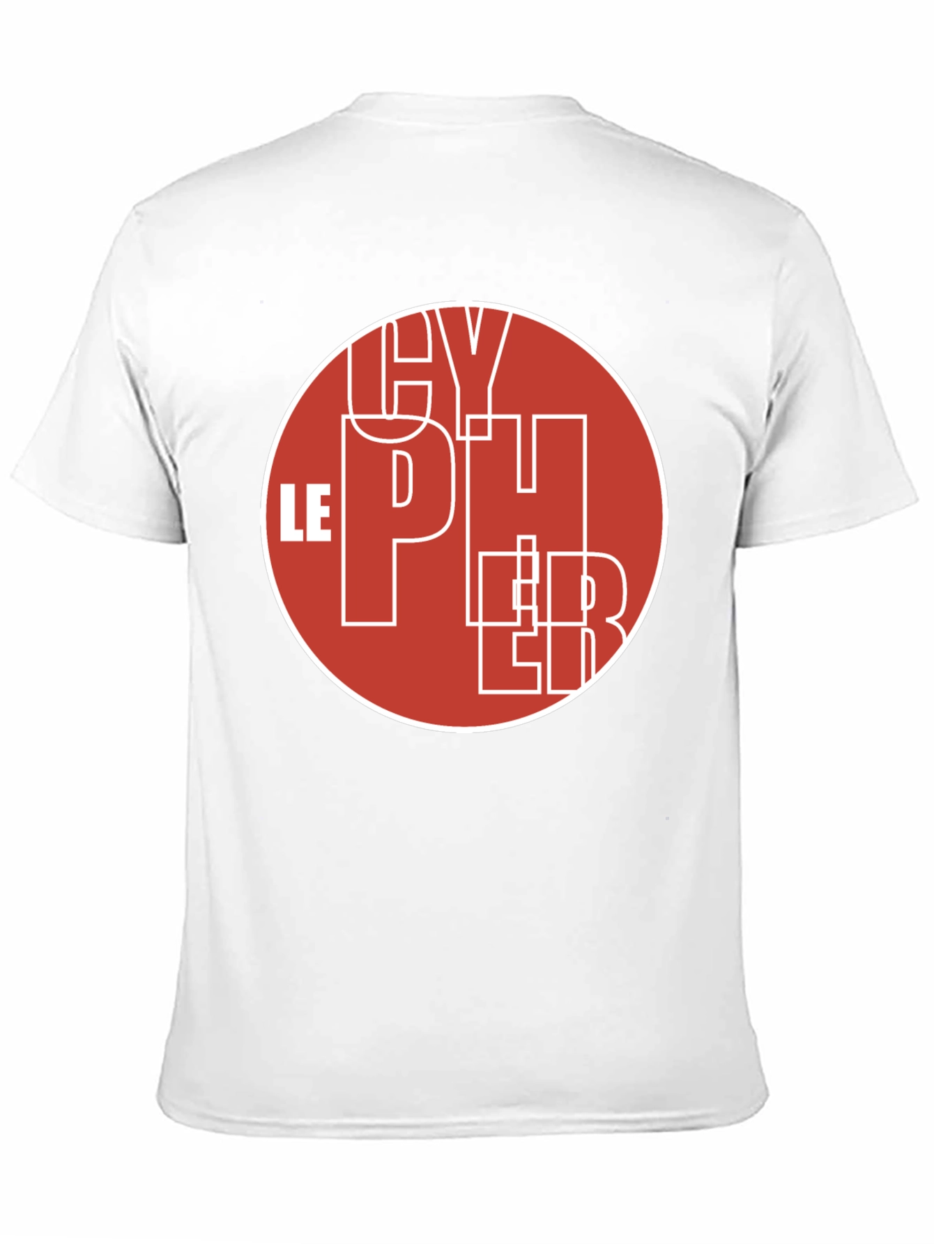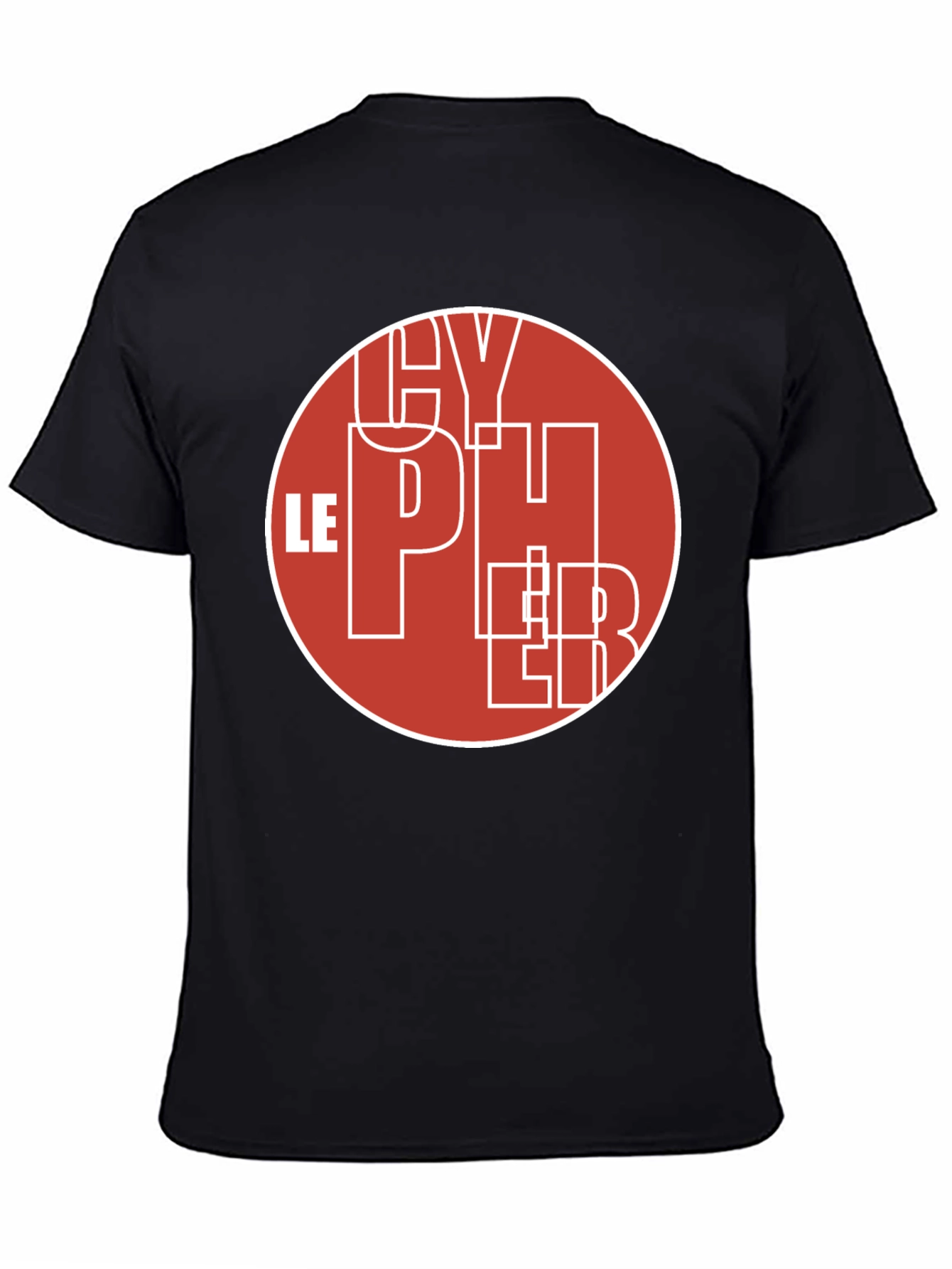 Show off your style with this bold graphic tee. Featuring a modern circular design in red and white with "CYPHER" text, this shirt is sure to turn heads. The striking graphic makes this t-shirt a standout piece. Perfect for casual outings, concerts, or making a statement wherever you go. Pair it with jeans, shorts, or joggers for a stylish, relaxed look. Made from comfortable materials, this tee offers a great fit and all-day wearability. Express yourself with this eye-catching graphic tee!