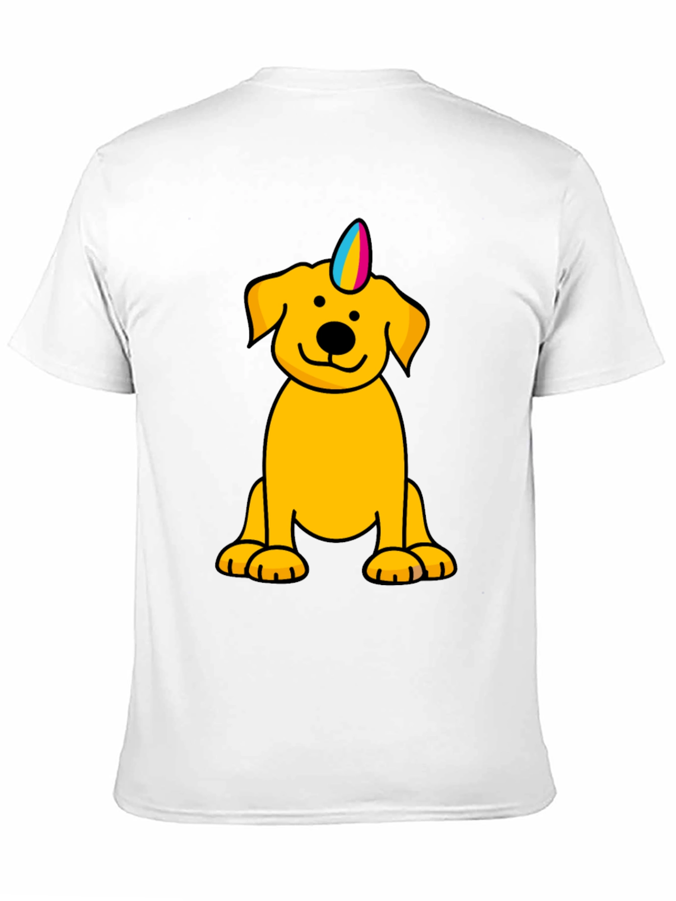 Show off your playful side with this fun graphic tee! The shirt features a cheerful cartoon dog with a colorful unicorn horn. The design is printed on a comfortable black tee. This shirt is sure to be a conversation starter. Made from soft, breathable fabric, this tee is perfect for casual wear. Whether you're running errands, hanging out with friends, or just relaxing at home, this dog unicorn tee will add a touch of whimsy to your day. A great gift for dog lovers and unicorn enthusiasts alike!