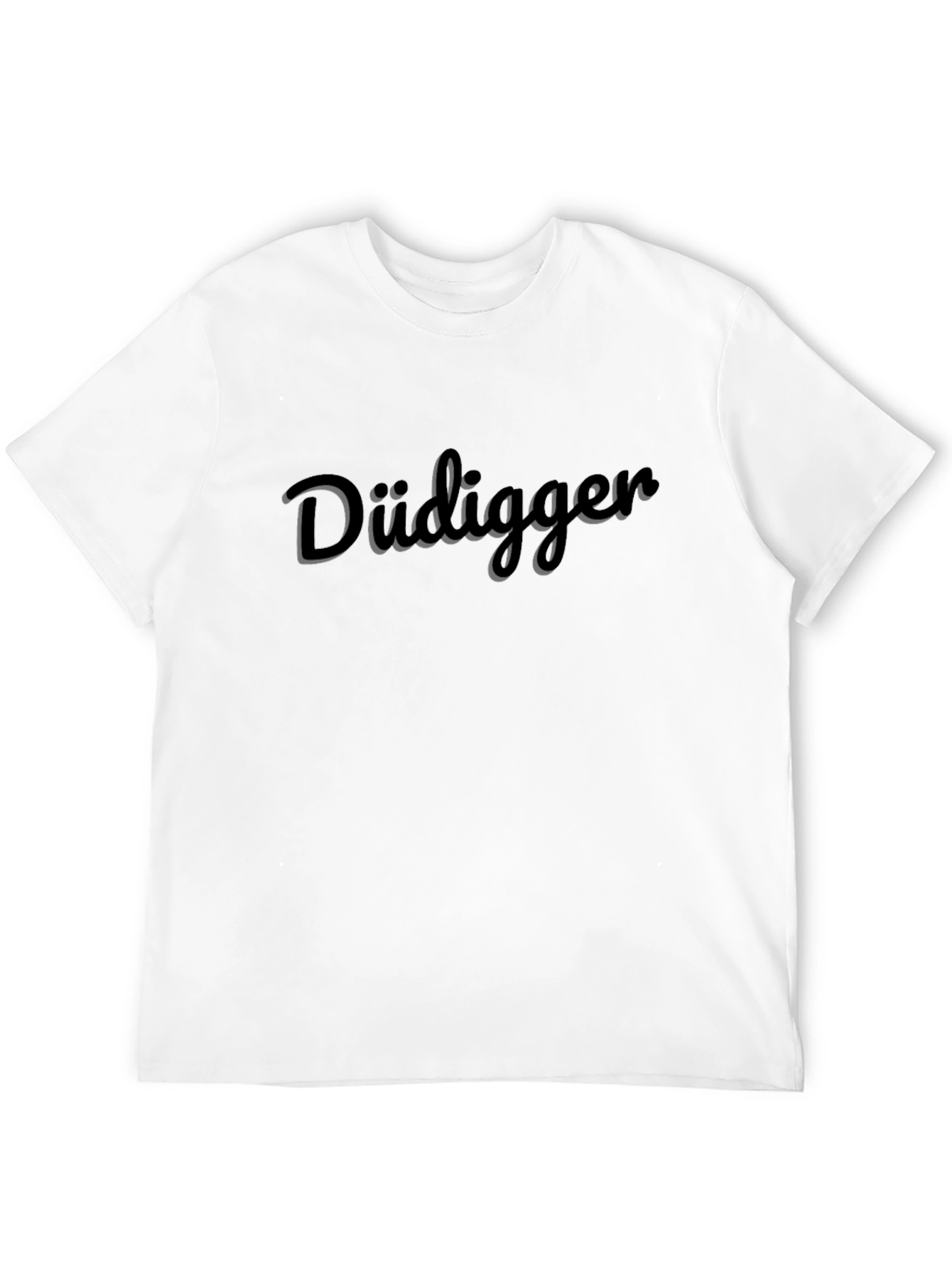 Elevate your casual style with this eye-catching black t-shirt featuring a distinctive "Düdigger" graphic print. The design showcases a modern aesthetic, making it a versatile addition to your wardrobe. Crafted from comfortable materials, this tee offers a relaxed fit and ensures all-day comfort. Perfect for everyday wear, social gatherings, or as a unique statement piece, this t-shirt effortlessly blends style and comfort. Pair it with jeans, shorts, or your favorite bottoms for a trendy, laid-back look. Make a bold fashion statement with this must-have graphic tee.