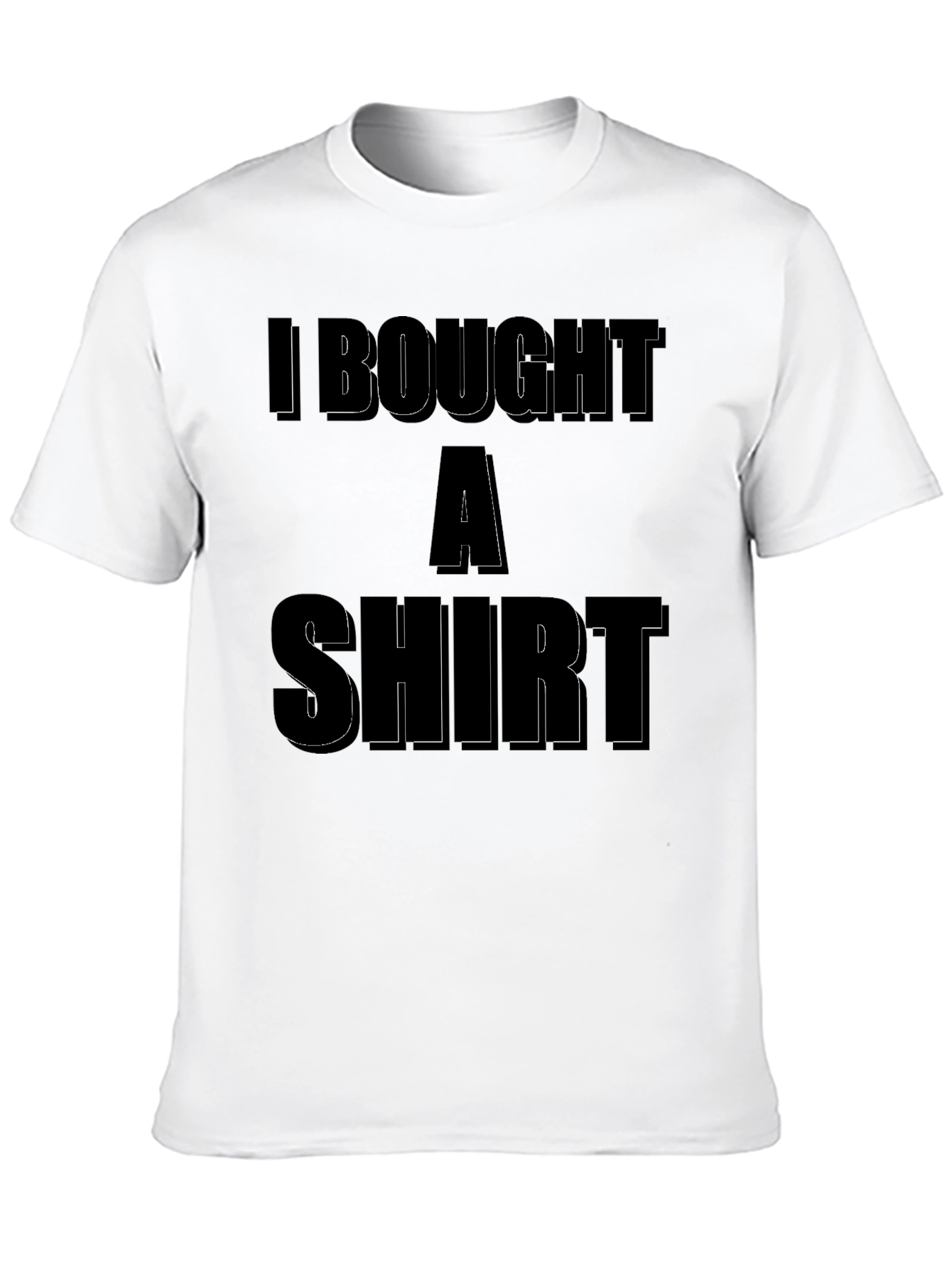 This classic black t-shirt features the humorous text "I BOUGHT A SHIRT" in bold, shadowed lettering. Crafted from what appears to be soft, breathable cotton, this tee offers both comfort and style. The simple, straightforward design makes it a versatile addition to any casual wardrobe. Ideal for everyday wear, running errands, or lounging at home, this t-shirt is sure to spark conversations and bring a bit of humor to your day. Show off your playful side with this comfortable and eye-catching graphic tee. Great gift idea! Available in multiple sizes.