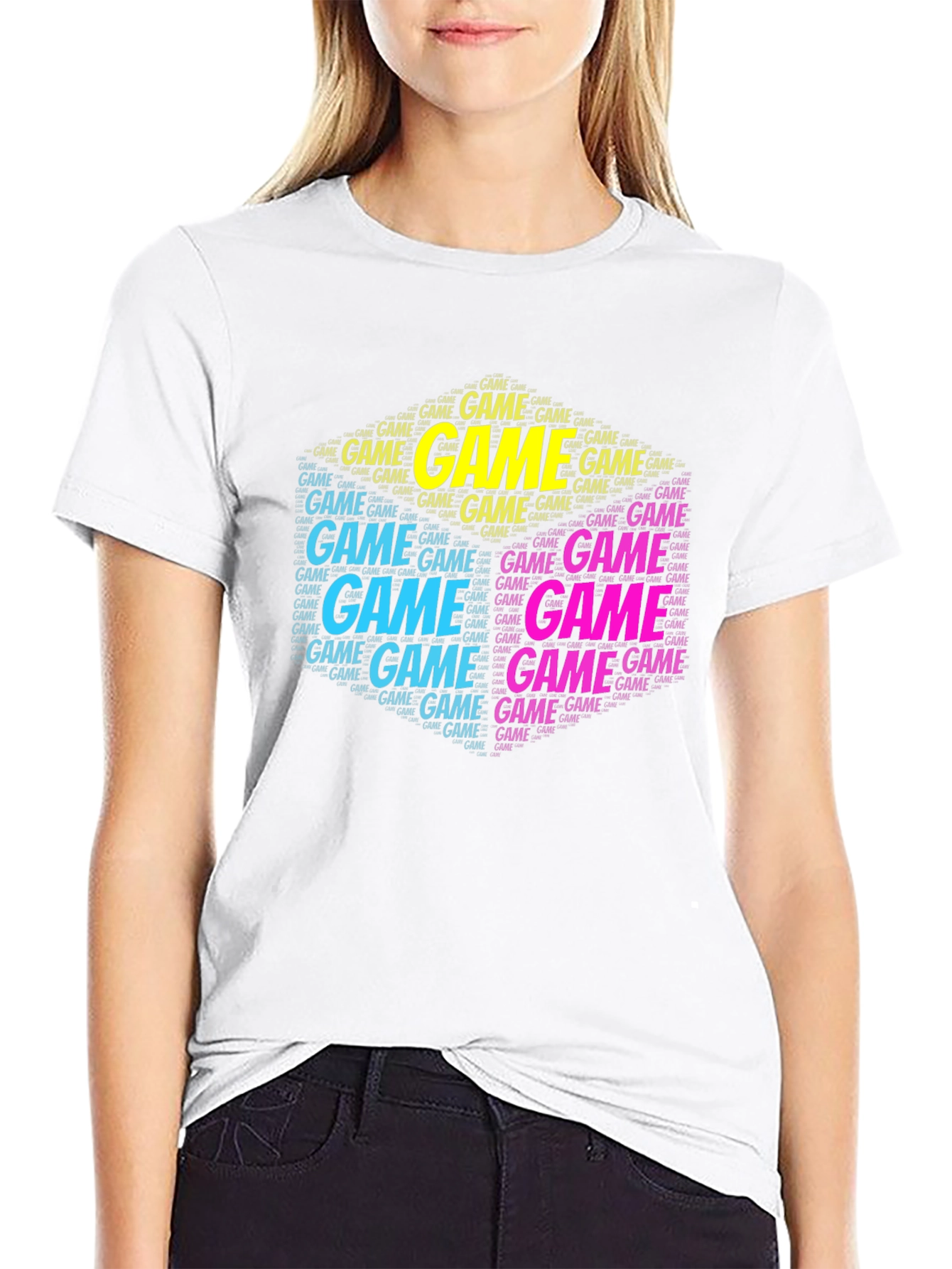 Level up your style with this unique graphic print t-shirt. Featuring a collage of the word "GAME" in vibrant hues of cyan, magenta, and yellow, this tee is a must-have for gamers and design enthusiasts alike. The design creates a cool, eye-catching pattern. Made from a comfortable, dark-colored fabric, this shirt is perfect for everyday wear or a casual gaming session. Pair it with jeans or shorts for a relaxed yet stylish look. Show off your passion for gaming with this standout piece!