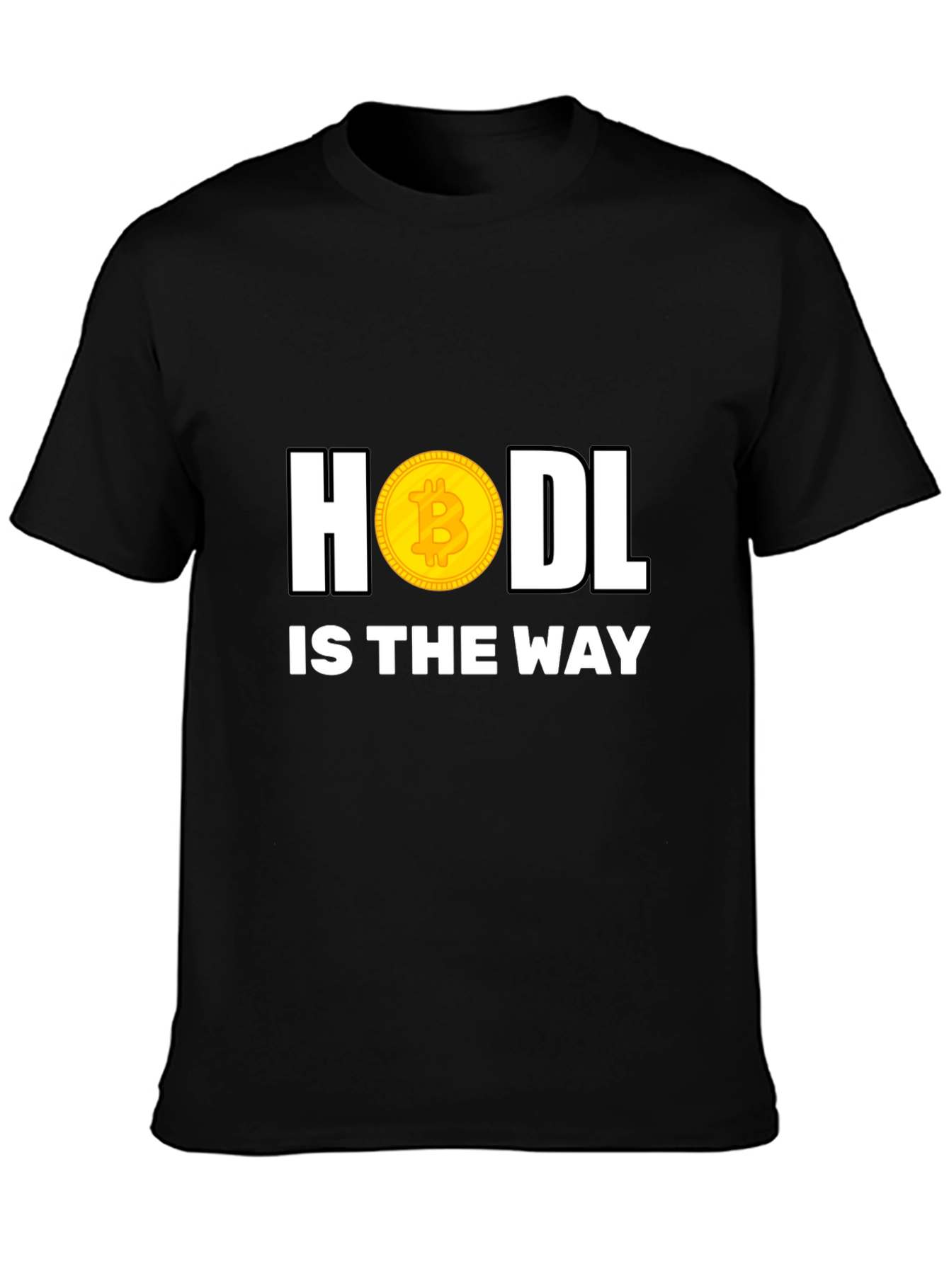 This eye-catching black t-shirt features a bold and humorous design for cryptocurrency enthusiasts. The text "HODL IS THE WAY" is printed in a large, clean white font, with the "O" in "HODL" replaced by a gold Bitcoin graphic. Made from what appears to be a soft and comfortable fabric, this tee is perfect for casual wear, crypto meetups, or as a conversation starter. Show off your commitment to the HODL strategy with this unique and stylish shirt! It is the perfect gift for any bitcoin investor.