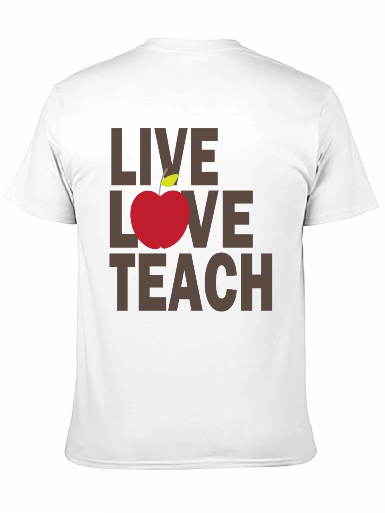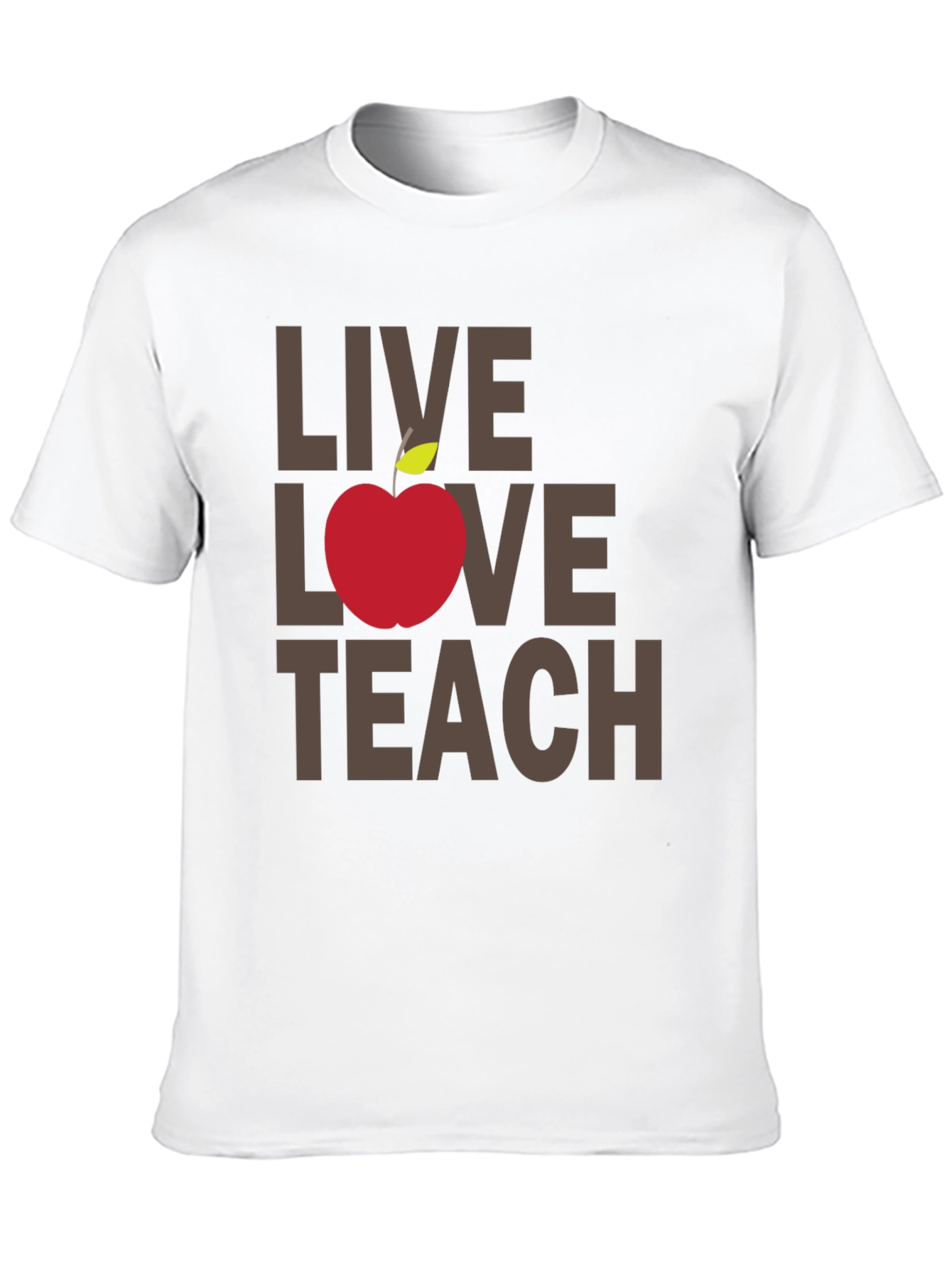 Show your appreciation for teachers with this stylish and meaningful t-shirt. The black tee features the phrase "Live Love Teach" in a solid brown font, with a vibrant red apple replacing the word "Love". The design is simple yet eye-catching, making it perfect for casual wear or teacher-themed events. Made from comfortable materials, this shirt offers a great fit and feel, suitable for everyday wear. Whether you're a teacher yourself or looking for a thoughtful gift, this t-shirt is sure to make a statement. Celebrate education and passion with this trendy tee.
