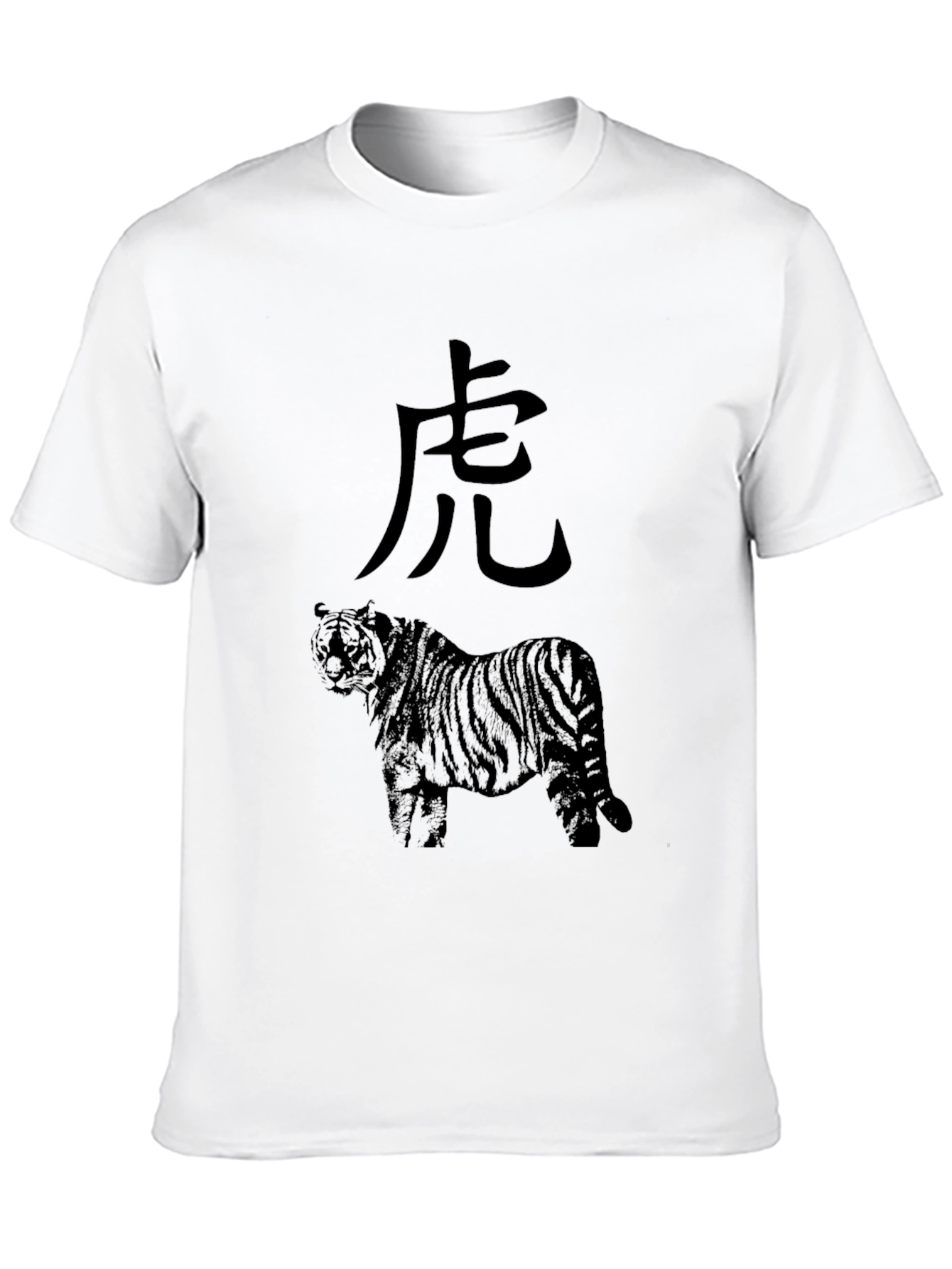 Showcase your wild side with this striking men's t-shirt! Featuring a bold tiger graphic complemented by a Chinese character above it, this tee is sure to turn heads. The classic crew neck design ensures a comfortable fit, perfect for everyday wear or casual outings. Made from a soft, breathable fabric, this t-shirt will keep you feeling great all day long. Pair it with jeans or shorts for a cool, effortless look. Express your unique style with this must-have addition to your wardrobe!
