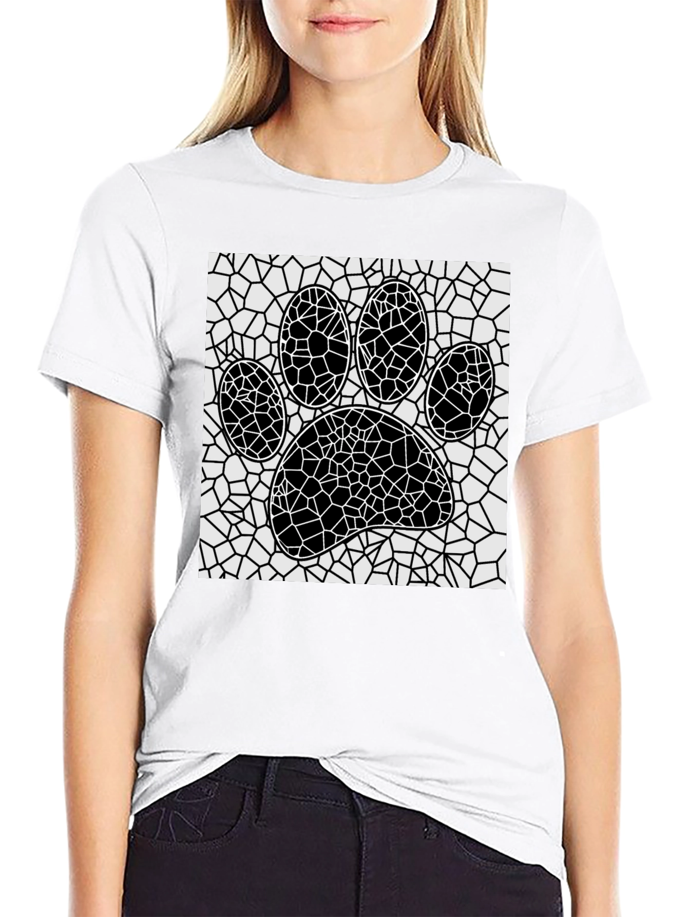 Mosaic Paw Print T-Shirt - Abstract Pet Lover Tee