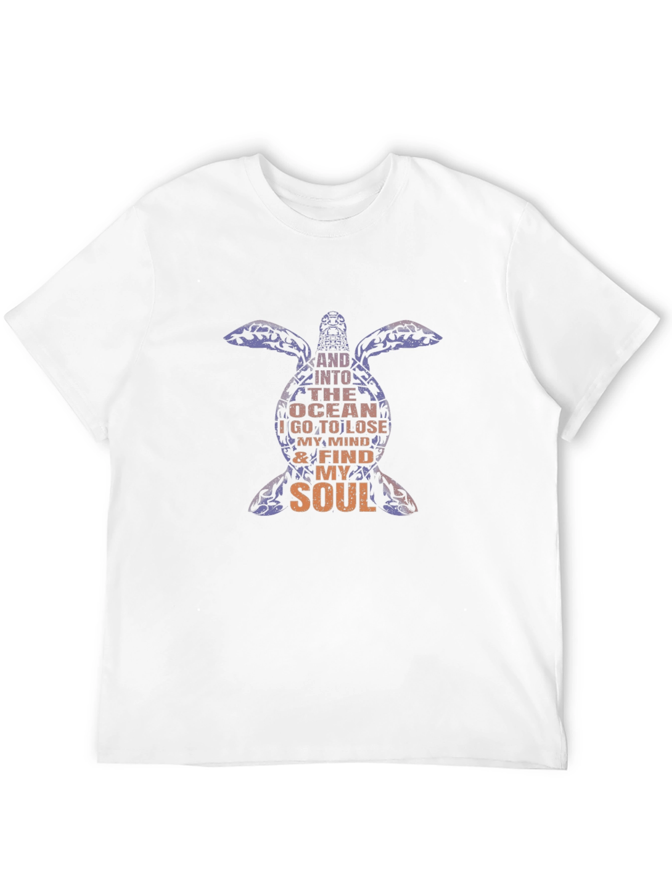 Dive into comfort with this stylish black t-shirt featuring a captivating turtle graphic. The design incorporates an inspirational quote, "And into the ocean I go to lose my mind & find my soul", adding a touch of introspection to your everyday wear. Perfect for ocean lovers and anyone seeking a laid-back yet meaningful style. This tee is ideal for casual outings, beach trips, or simply relaxing at home. Show off your love for the sea and your inner peace with this unique and comfortable tee.