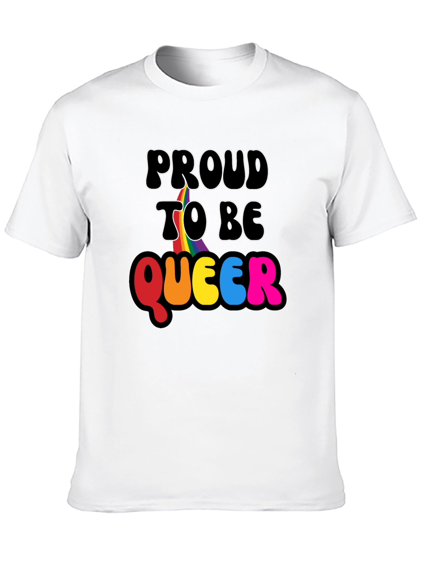 Show your pride with this bold black t-shirt featuring the vibrant declaration "Proud to Be Queer." The playful, bubbly lettering incorporates the colors of the rainbow, adding a cheerful and eye-catching element. Made from a comfortable material, this tee is perfect for everyday wear, pride events, or casual outings where you want to express yourself. Its classic fit and short sleeves make it a versatile addition to any wardrobe. Let your true colors shine with this statement piece!