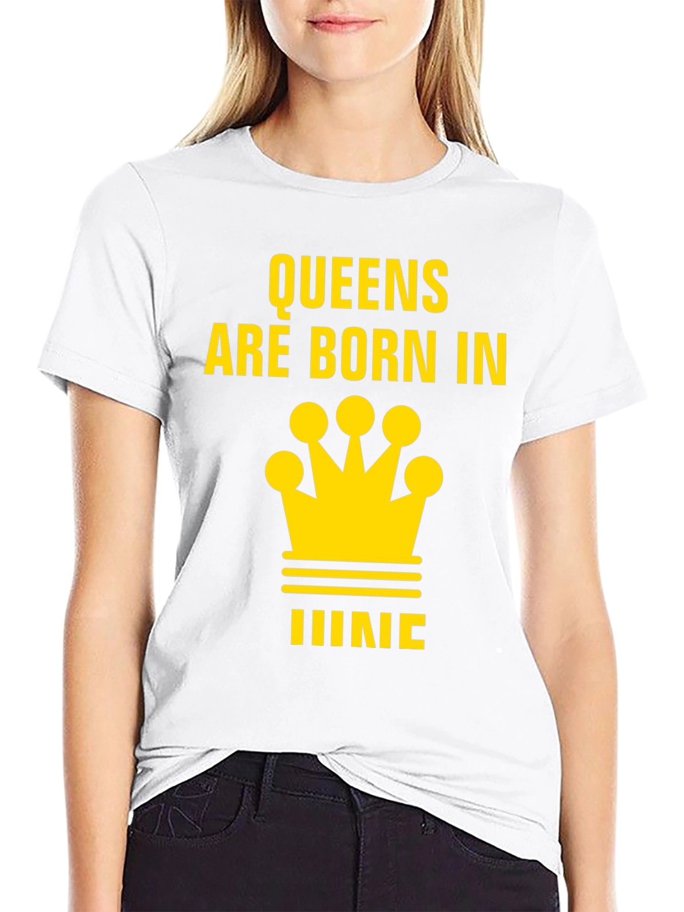 This black t-shirt makes a bold statement with its vibrant yellow graphic. Featuring the phrase "Queens Are Born In June" above a stylized crown, this shirt is perfect for celebrating a June birthday. The classic fit and soft fabric ensure all-day comfort, whether you're running errands or hanging out with friends. Show off your royal spirit with this eye-catching tee that combines comfort, style, and a touch of fun. Ideal for casual wear, parties, or as a thoughtful gift for the queen in your life.