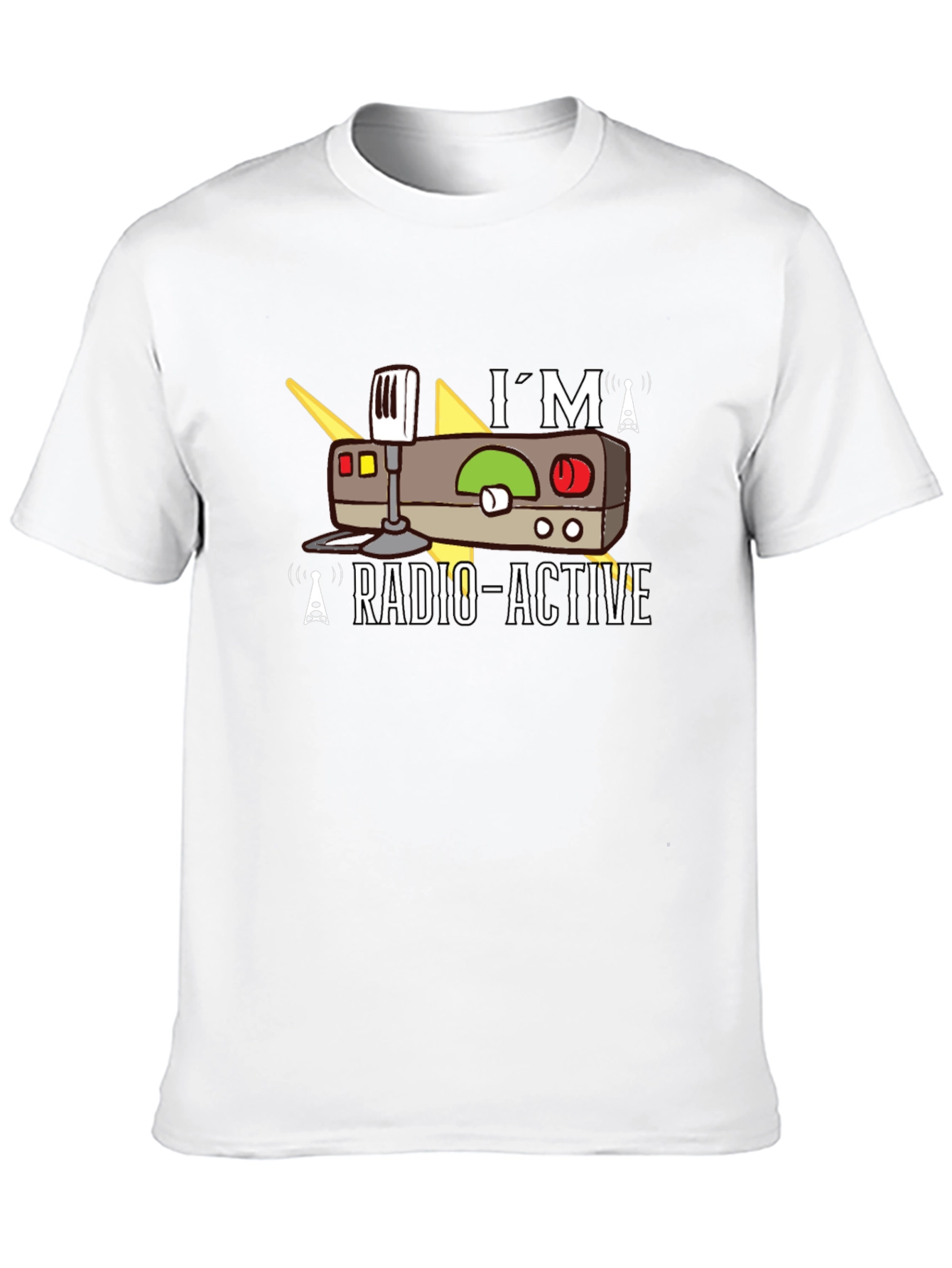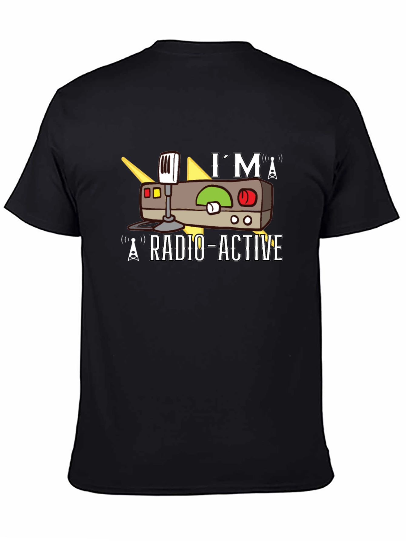 This black t-shirt features a humorous graphic design perfect for ham radio enthusiasts. The design showcases a cartoon-style ham radio transceiver with a microphone, along with the playful text "I'm 'A' RADIO-ACTIVE", a catchy phrase for radio operators. Made from a comfortable fabric, this tee offers a casual fit and is ideal for everyday wear, radio club meetings, or as a gift for the radio-loving friend or family member in your life. Show off your passion for radio communication with this unique and eye-catching tee!