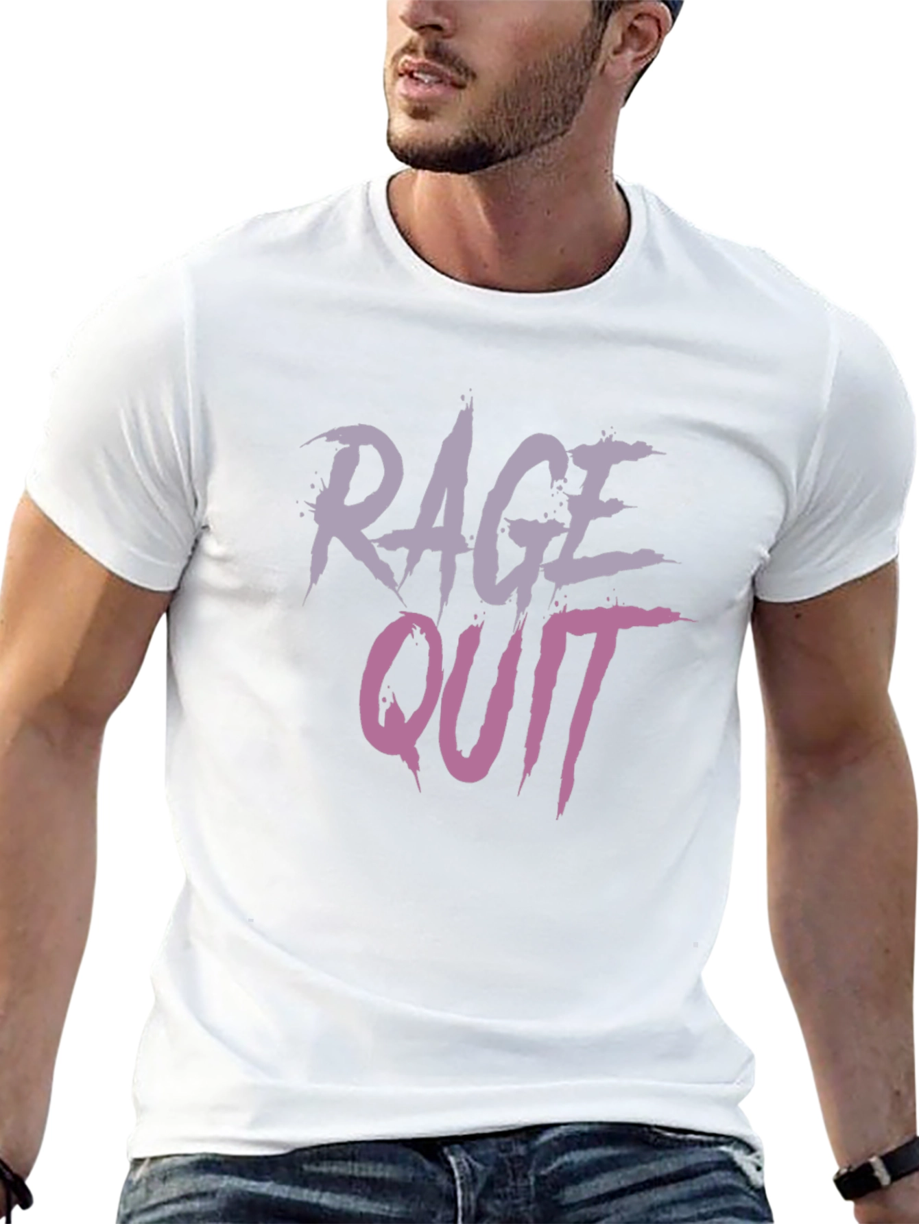 Show off your gamer spirit with this bold black t-shirt. Featuring a striking "Rage Quit" graphic design in cool purple and pink hues, this tee is perfect for casual wear. The short-sleeved style and comfortable fit make it ideal for gaming sessions, hanging out with friends, or just expressing your unique personality. Made from a soft, breathable fabric, it ensures all-day comfort. Whether you're a hardcore gamer or just appreciate a touch of edgy style, this Rage Quit tee is a must-have addition to your wardrobe. Get yours today and let your shirt do the talking!