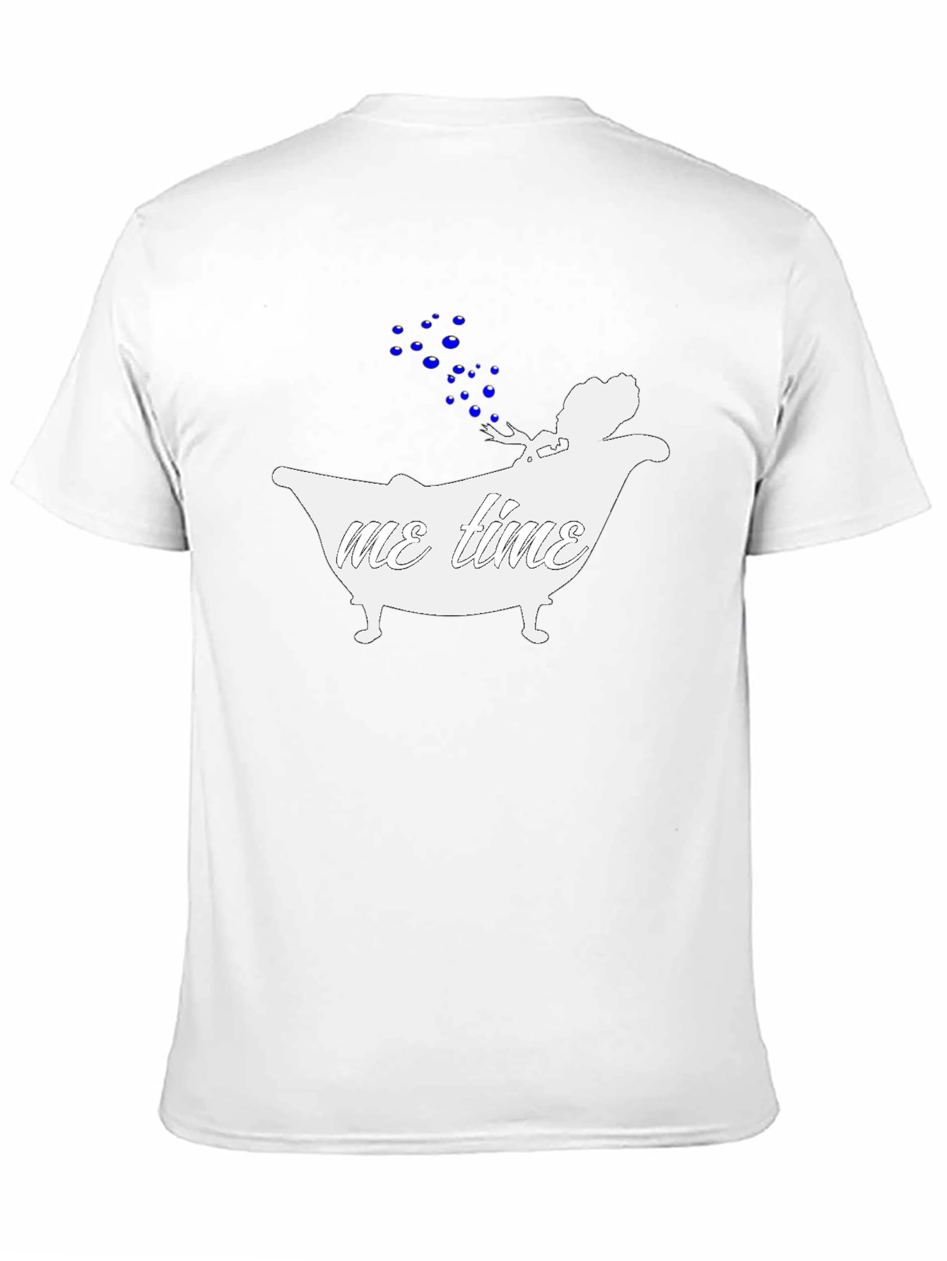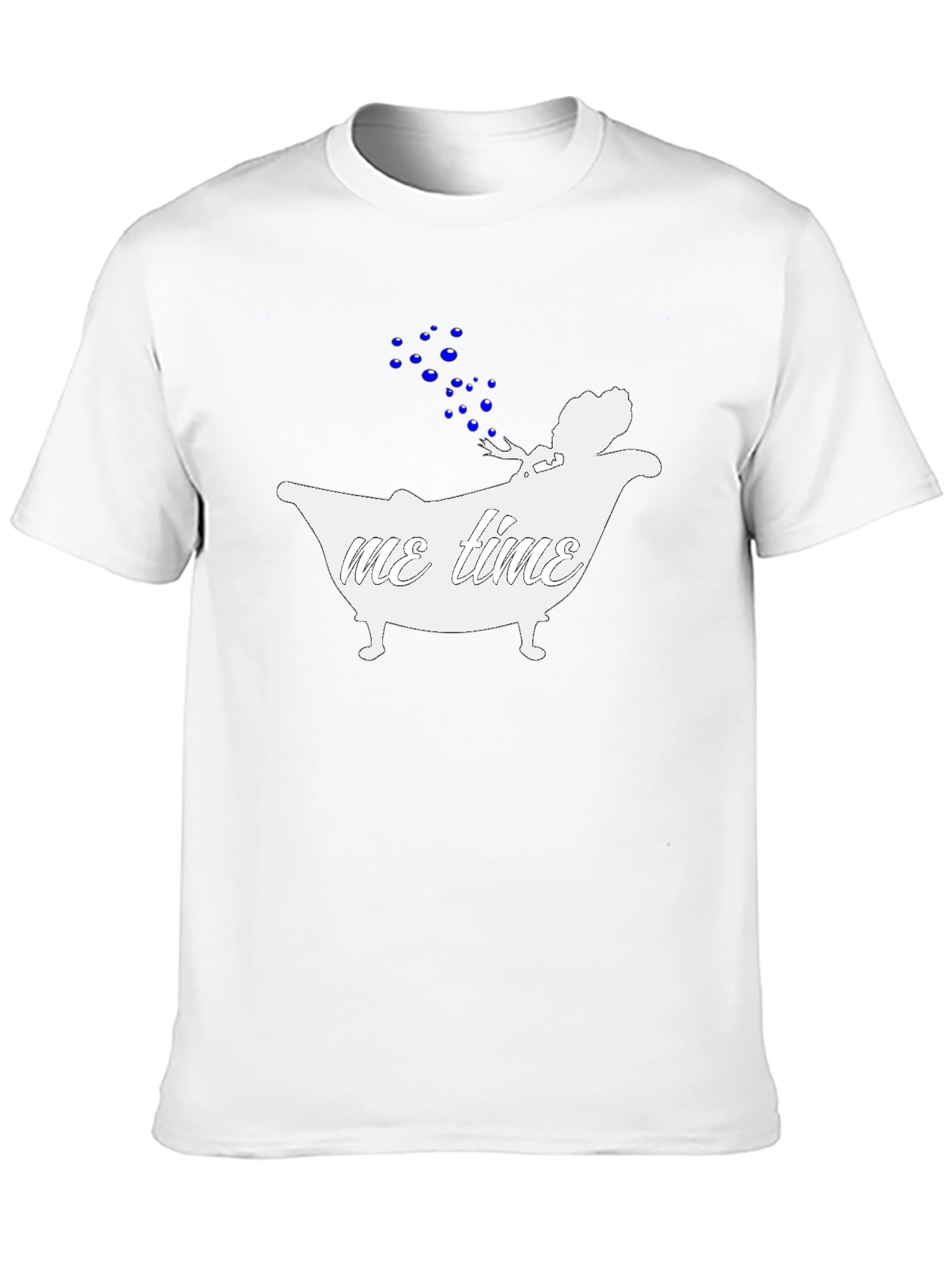 Unwind in style with this unique black cotton t-shirt featuring a whimsical design. The graphic shows a silhouette of a person enjoying a bubble bath, with the words "me time" elegantly incorporated into the bathtub. The playful blue bubbles add a touch of serenity. Made from soft, breathable cotton, this tee offers exceptional comfort for everyday wear. It's perfect for lounging at home, running errands, or meeting friends. This t-shirt is not just apparel; it's a statement about the importance of self-care. Get yours today and embrace your "me time" in ultimate comfort and style!