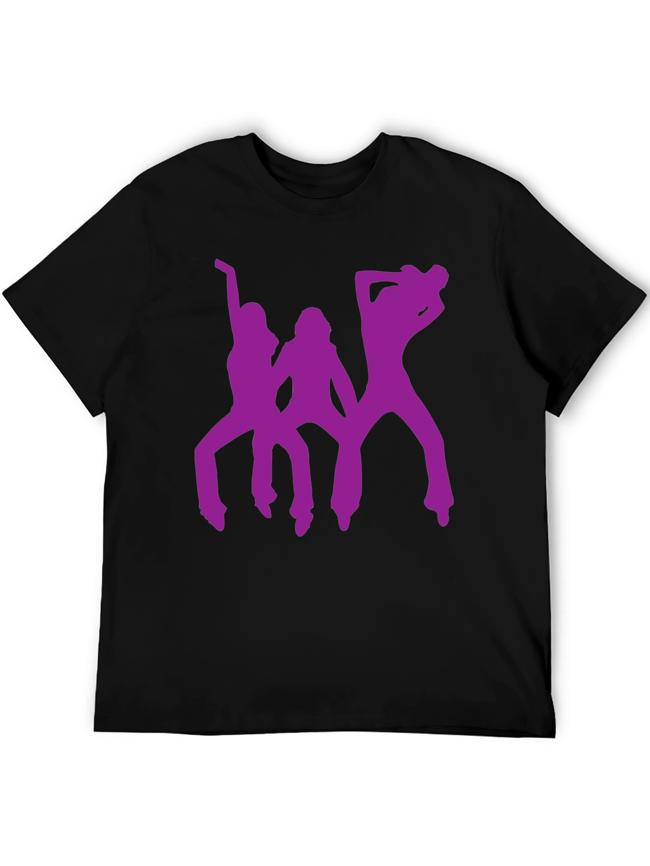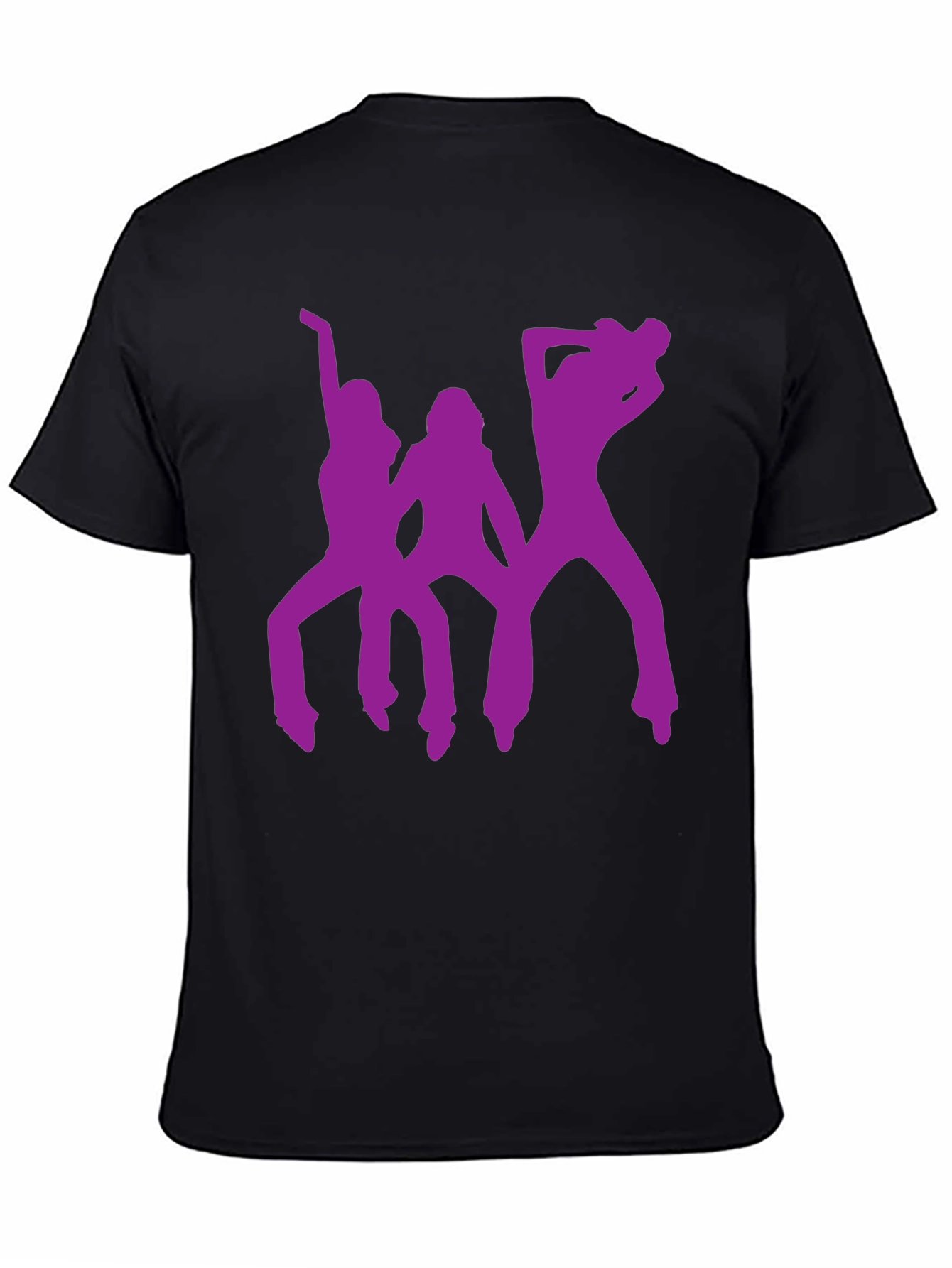 Step back in time with this eye-catching t-shirt! Featuring a bold, purple silhouette of three disco dancers, this shirt is sure to turn heads. The design is printed on a classic black tee, making the vibrant purple pop. Made from a comfortable, breathable fabric, this shirt is perfect for a night out dancing or a casual day of retro fun. Show off your love for disco and vintage style with this unique and stylish tee. Add a touch of groovy flair to your wardrobe!