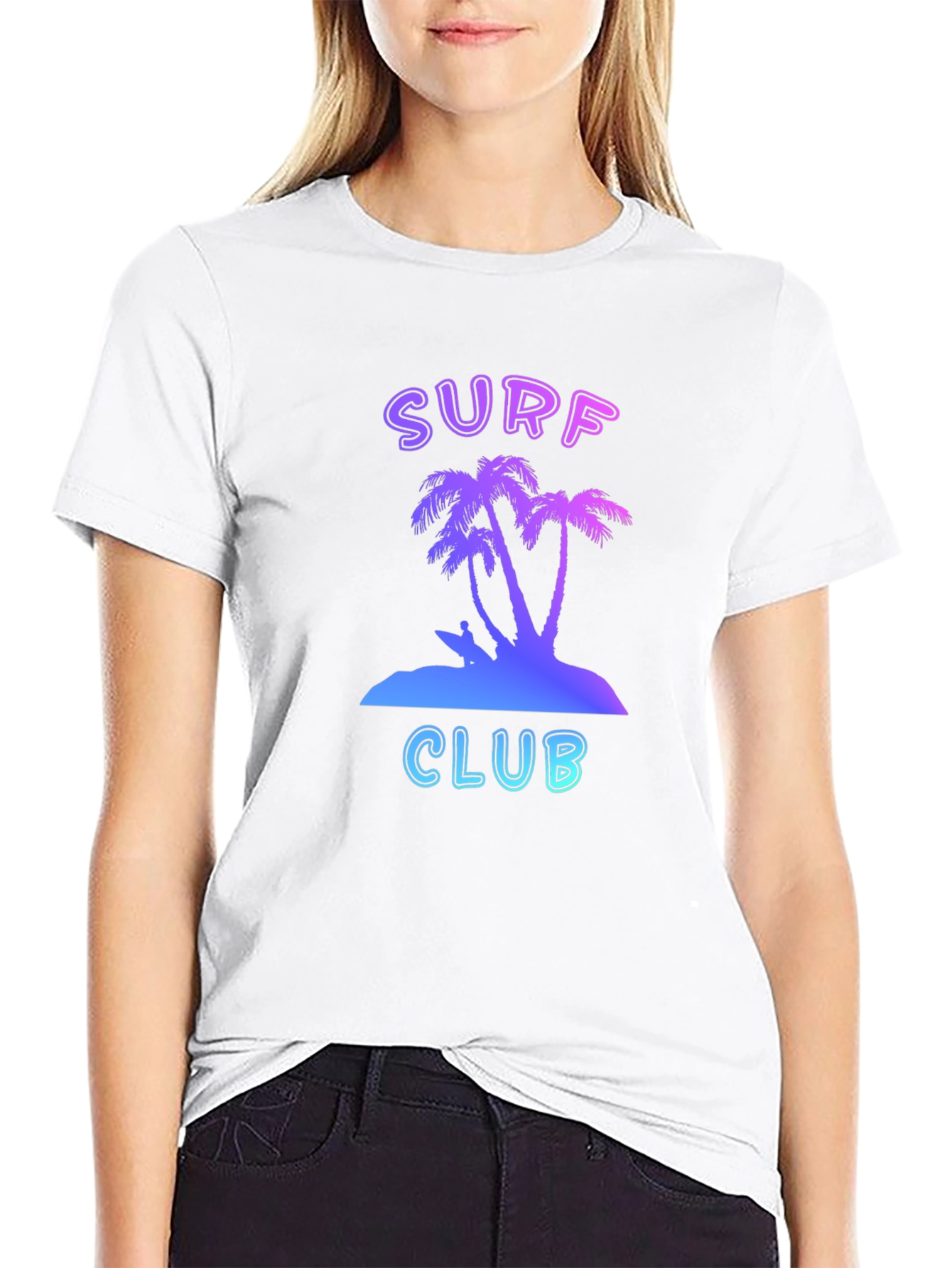 Embrace the island lifestyle with this stylish Surf Club T-shirt. The design features a vibrant, gradient-colored palm tree graphic, complete with a surfboard silhouette for that ultimate surf vibe. 'SURF CLUB' is boldly displayed above and below the island image. Made from a comfortable-looking fabric, this tee is perfect for casual wear, beach outings, or just showcasing your love for the surf culture. Stand out with this unique piece that blends comfort and style seamlessly. Ideal for those who dream of sunny days and perfect waves.