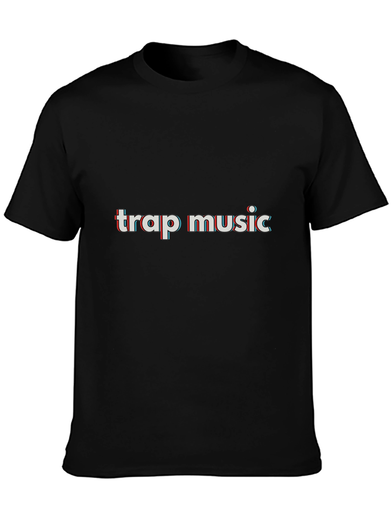 Show off your love for trap music with this stylish black t-shirt! Featuring a bold "trap music" text design with a cool red and blue glitch effect, this shirt is sure to make a statement. The classic fit and comfortable fabric make it perfect for everyday wear, concerts, or casual hangouts. Upgrade your wardrobe with this unique tee and let everyone know what your favorite genre is! This is a classic short sleeve shirt for men.