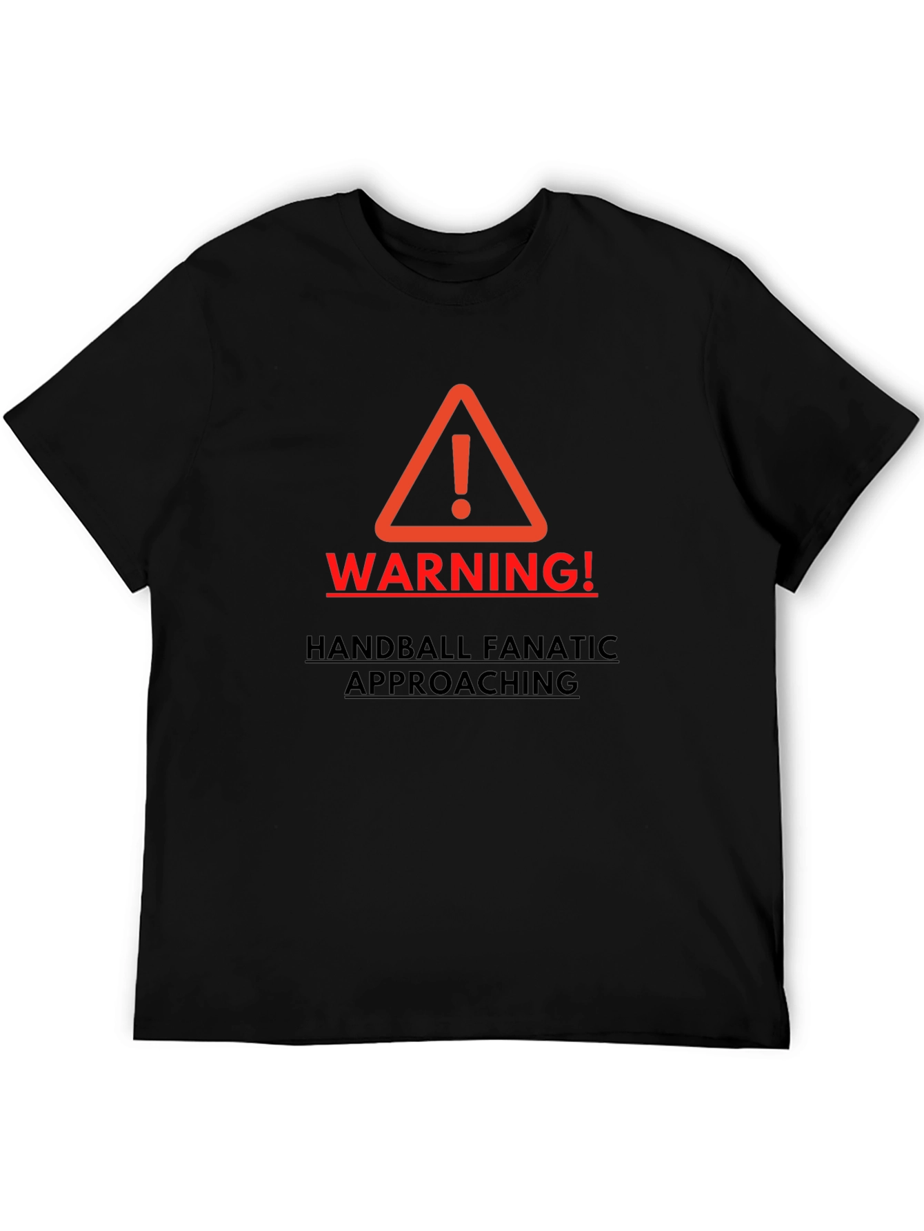 Showcase your passion for handball with this unique Warning Handball Fanatic T-shirt. This eye-catching black tee features a bold red warning sign, complete with an exclamation point, above the declaration: HANDBALL FANATIC APPROACHING. The playful design is perfect for casual wear, handball games, or sporting events. Made from comfortable materials, this t-shirt ensures a great fit and long-lasting durability. Stand out from the crowd and let everyone know about your dedication to handball with this must-have tee. It's the perfect gift for any handball enthusiast!