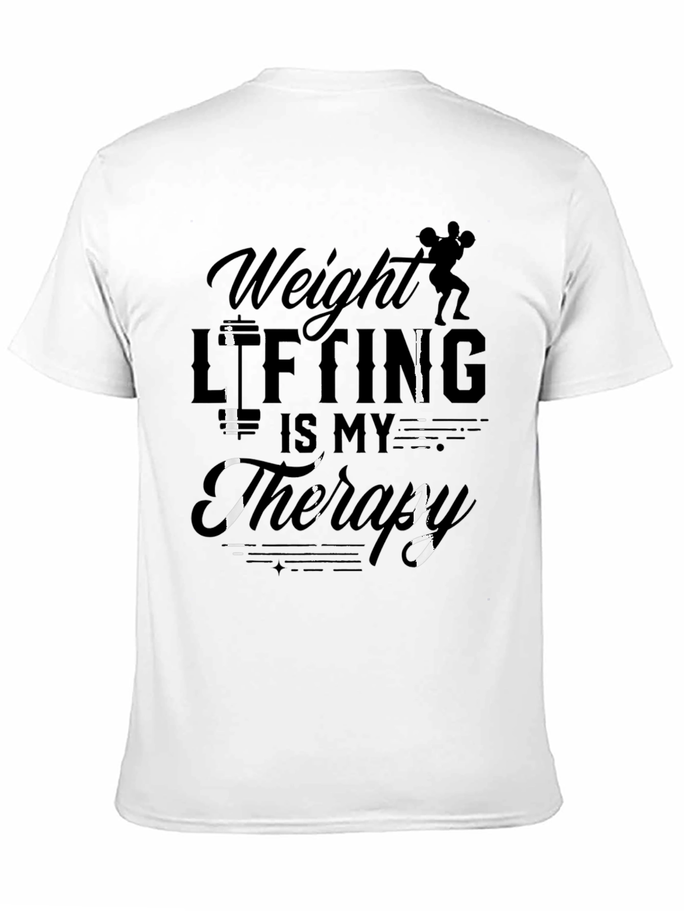 This classic black t-shirt features a bold graphic design that speaks to fitness enthusiasts. The shirt proudly proclaims "Weight Lifting is My Therapy" in a stylish font, complete with an illustration of a weightlifter. Ideal for gym sessions, casual outings, or simply showcasing your passion for fitness, this tee combines comfort and style. Made from what appears to be a soft, breathable fabric, it ensures maximum comfort during workouts or everyday wear. Perfect as a gift for weightlifters, bodybuilders, or anyone who finds solace in the gym. Let your t-shirt do the talking and express your love for weightlifting!