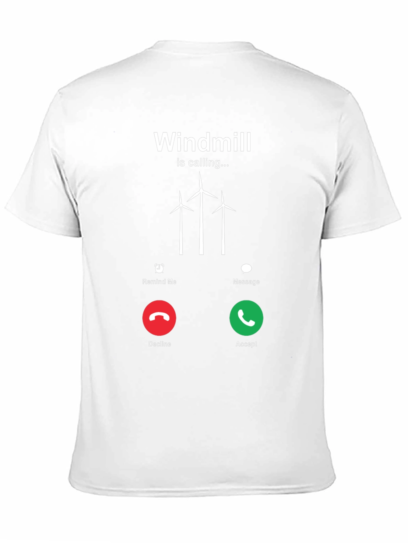 Stay connected to green energy with this unique graphic tee! The shirt features a creative design of an incoming call from 'Windmill,' complete with a phone interface. The clean design includes stylized windmill graphics above the call options. This shirt is perfect for environmental enthusiasts, engineers, or anyone who appreciates renewable energy. Show off your commitment to sustainable living with this fun and comfortable tee. Wear it to climate rallies, casual outings, or while volunteering for environmental causes. Accept the call to eco-consciousness!