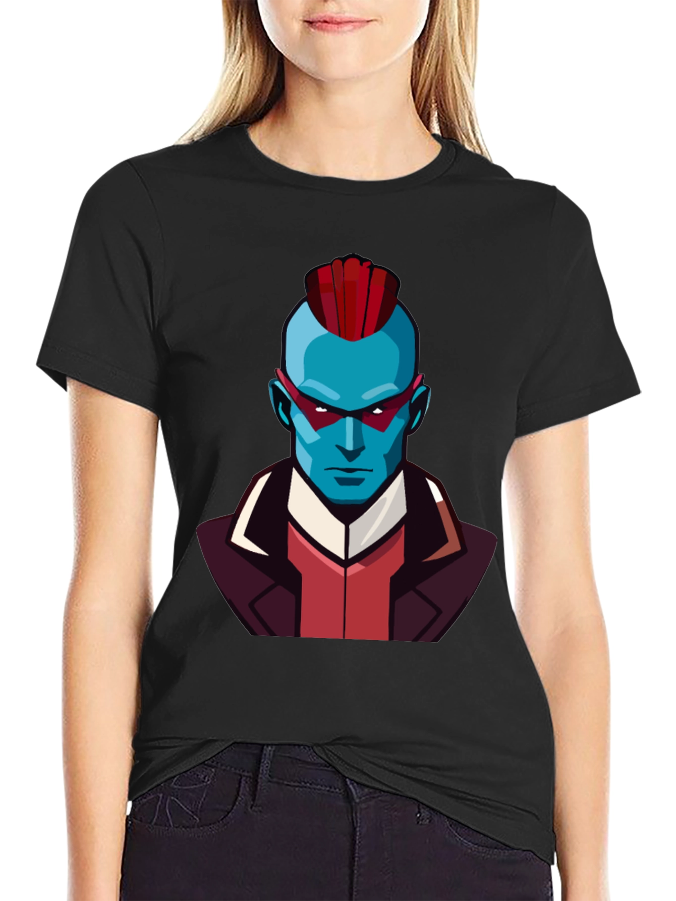 Show your love for Guardians of the Galaxy with this unique Yondu-inspired graphic tee. This black t-shirt features a bold, stylized illustration of Yondu Udonta, complete with his signature blue skin, red fin, and intense gaze. The design is printed on a comfortable, soft-feel fabric, perfect for everyday wear or cosplay events. The detailed graphic is eye-catching and a great conversation starter for fans of the iconic Marvel character. Whether you're attending a comic convention, hanging out with friends, or simply expressing your fandom, this Yondu t-shirt is the perfect choice. Add this unique piece to your collection and represent your favorite Ravager!